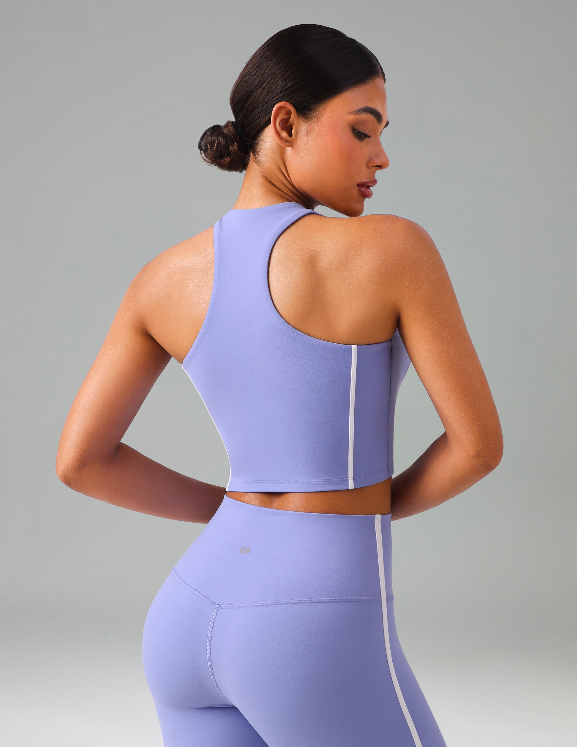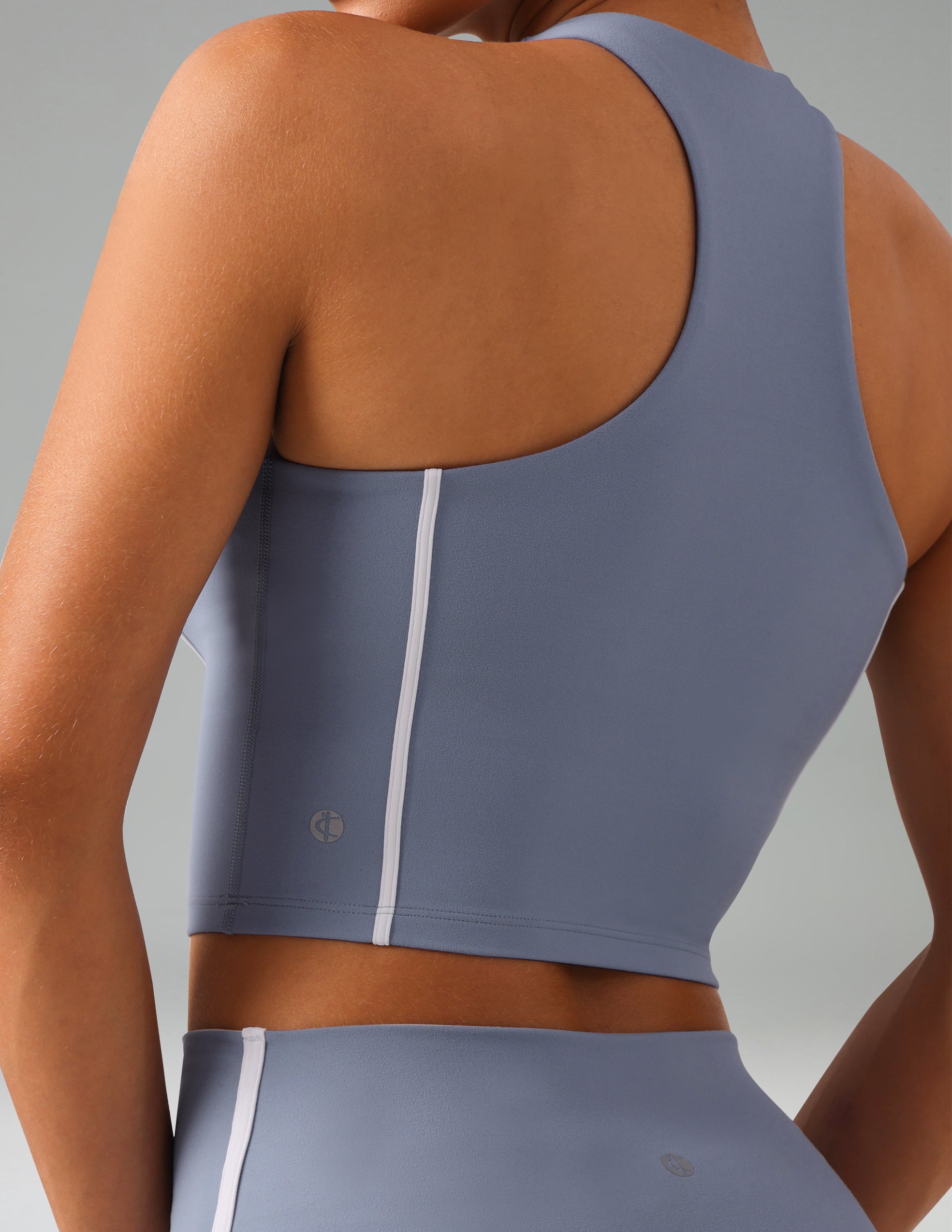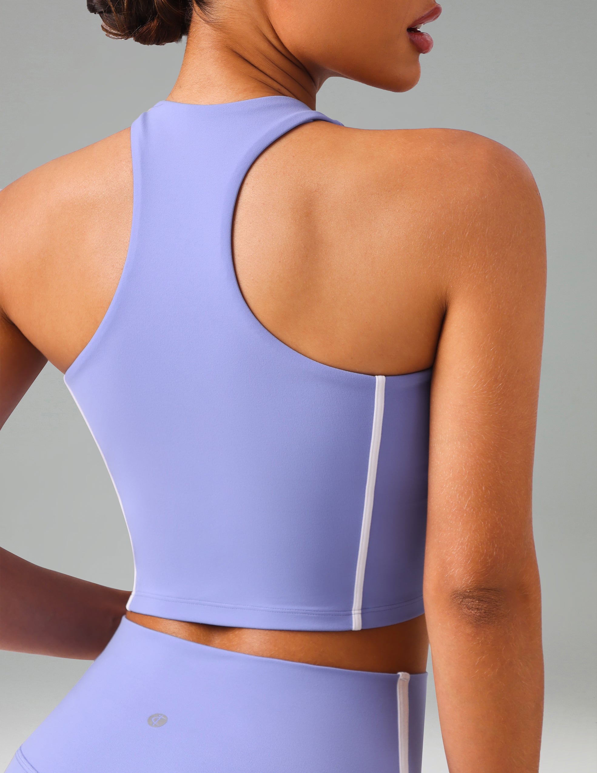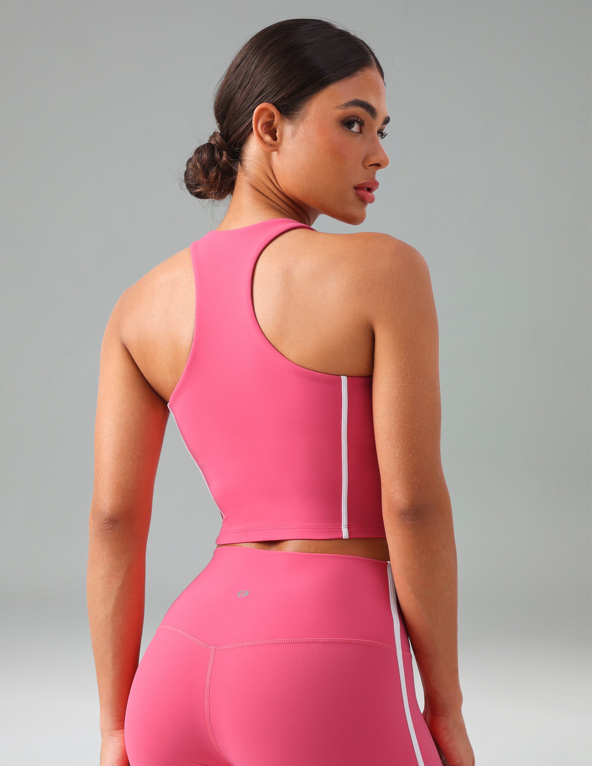 Dreamlux Cropped Racerback Tank Top w/ Contrast Stripes