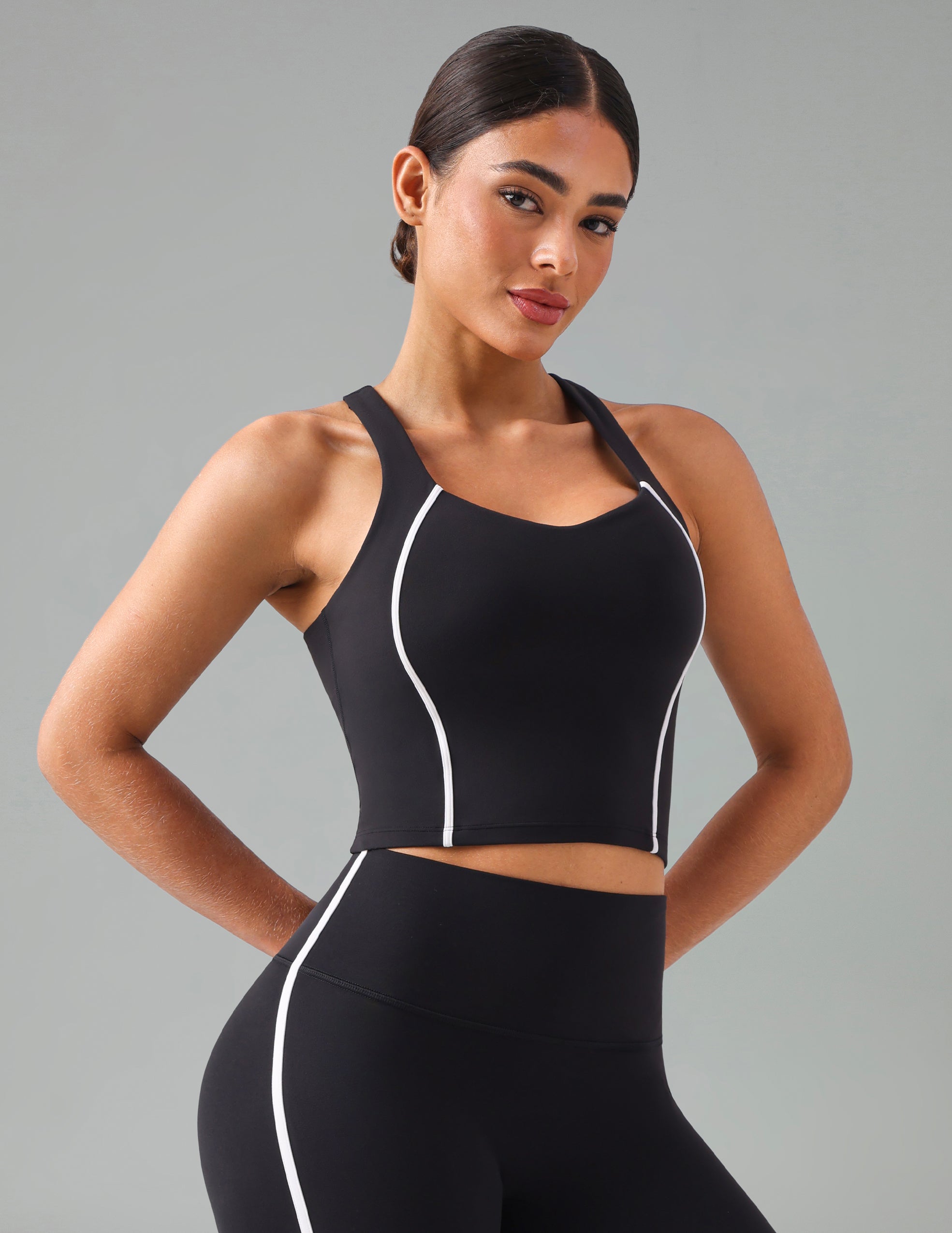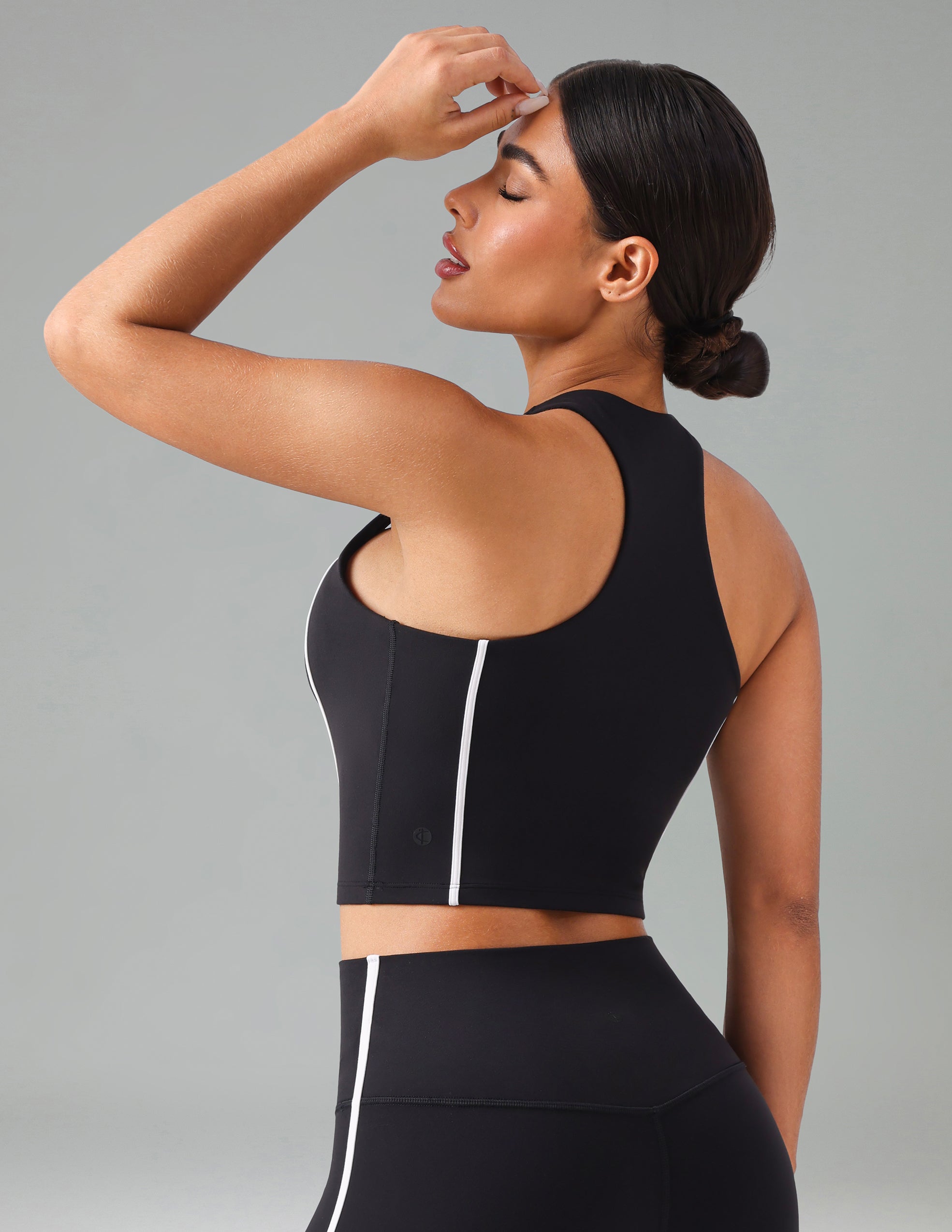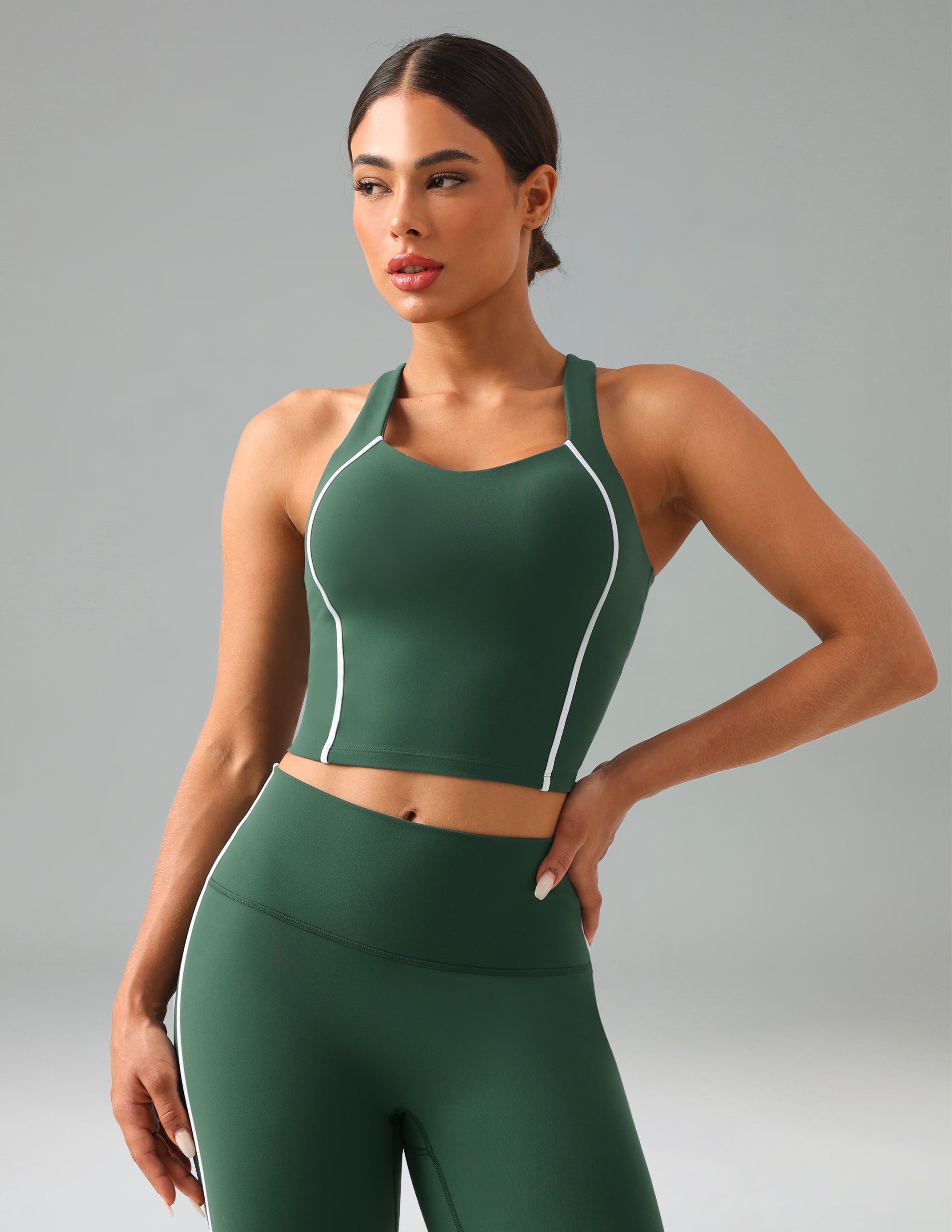 Dreamlux Cropped Racerback Tank Top w/ Contrast Stripes
