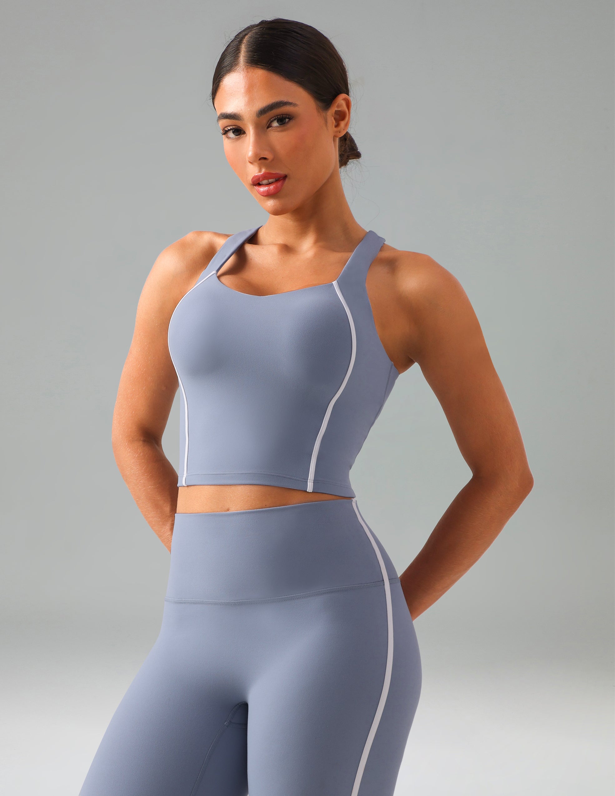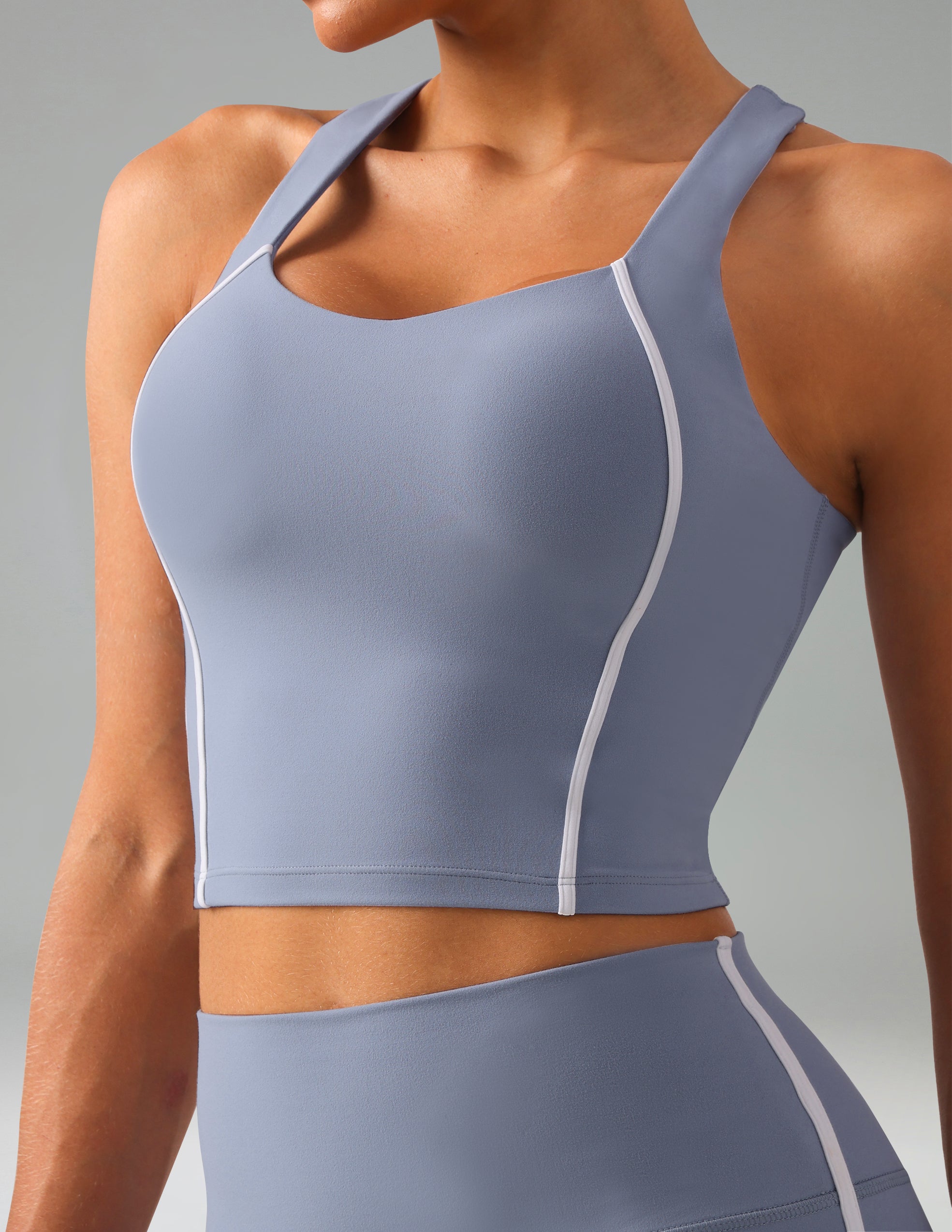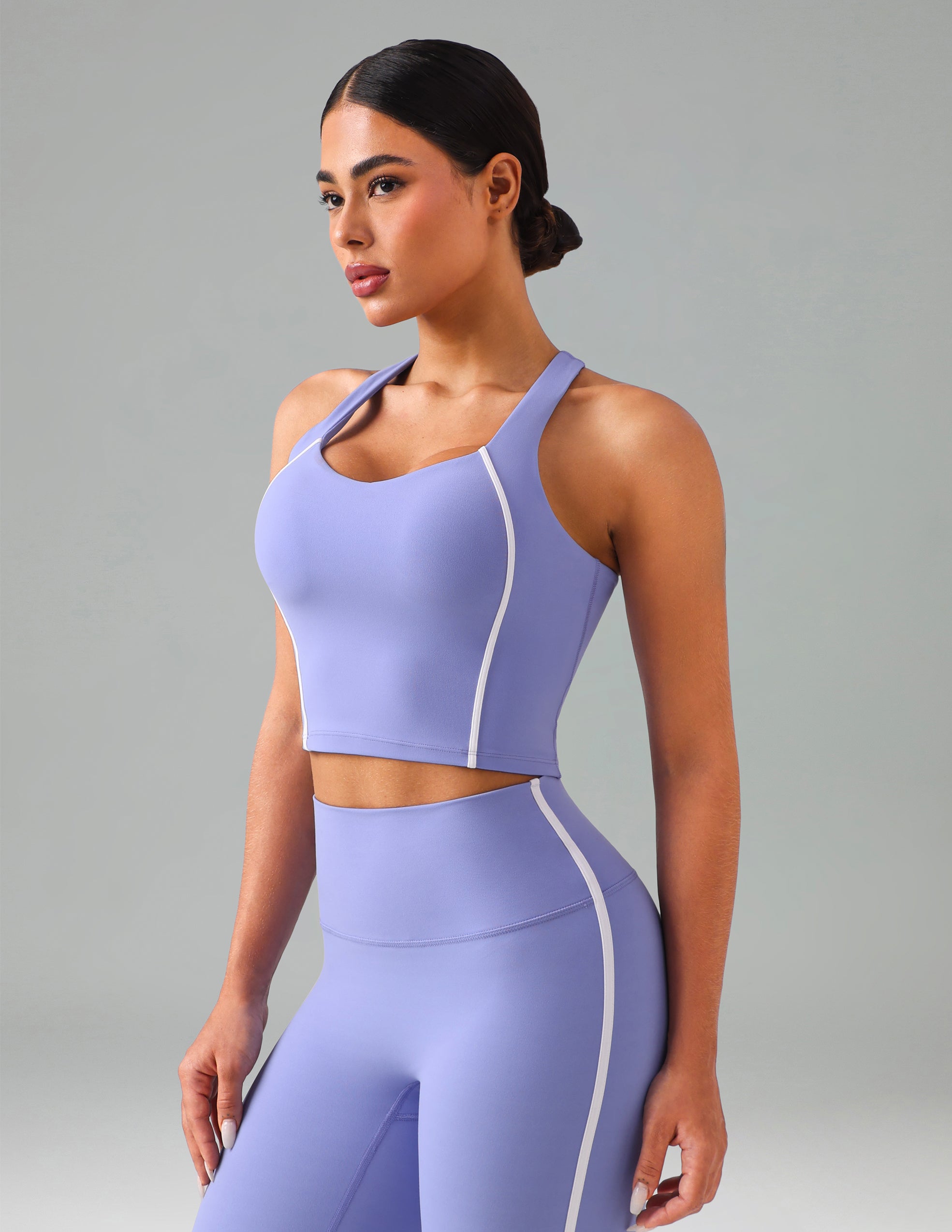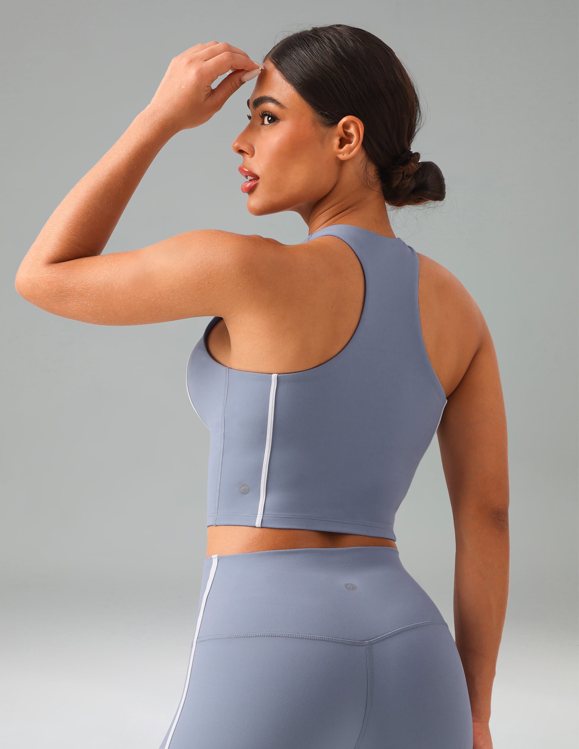 Dreamlux Cropped Racerback Tank Top w/ Contrast Stripes