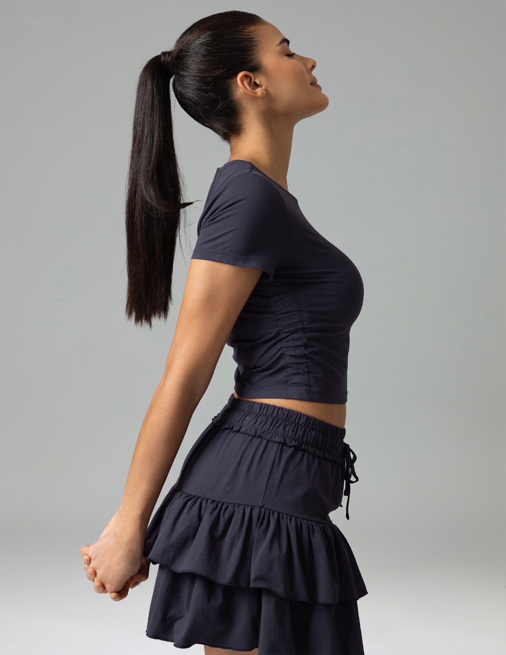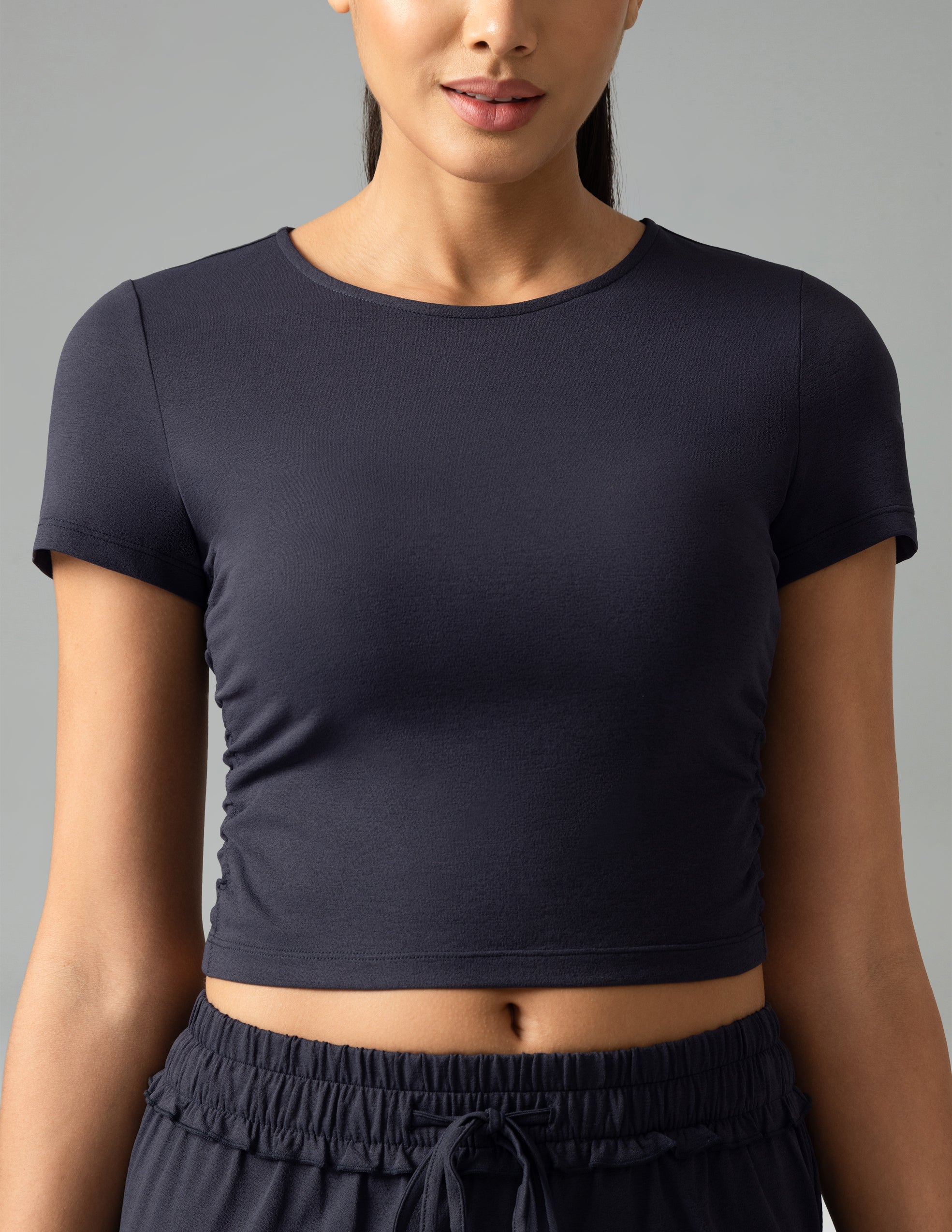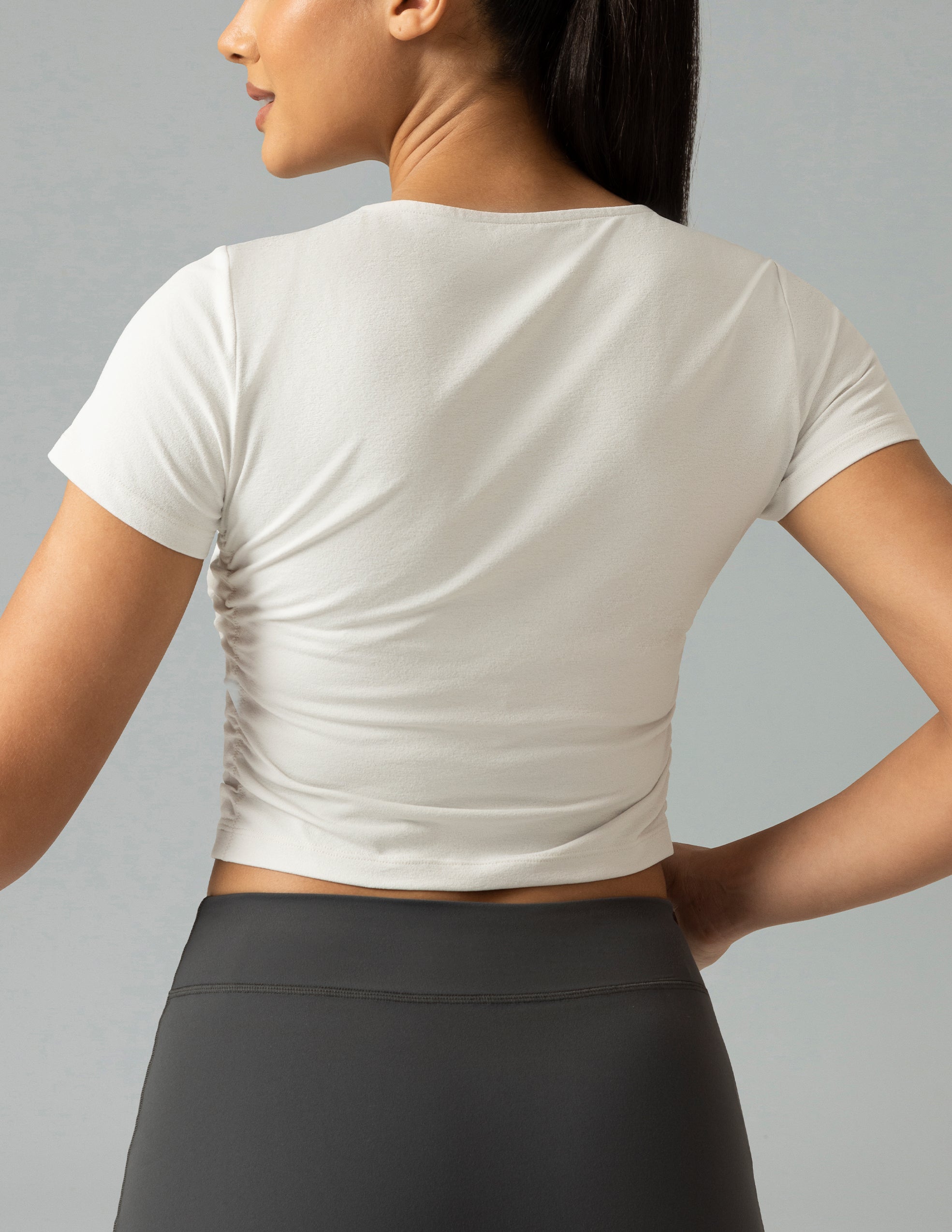 Sorona Ruched Crew Neck Cropped T-Shirt – Slim Fit