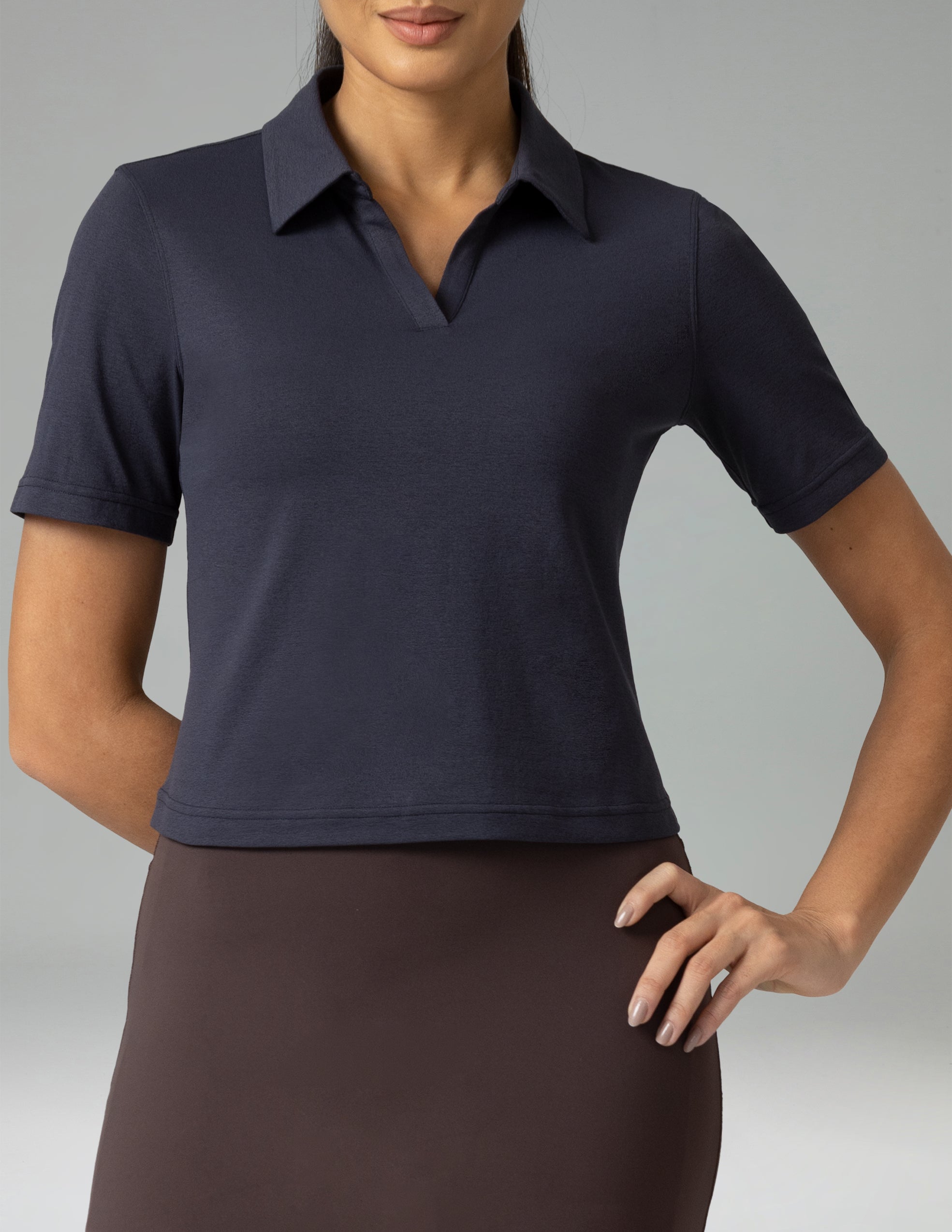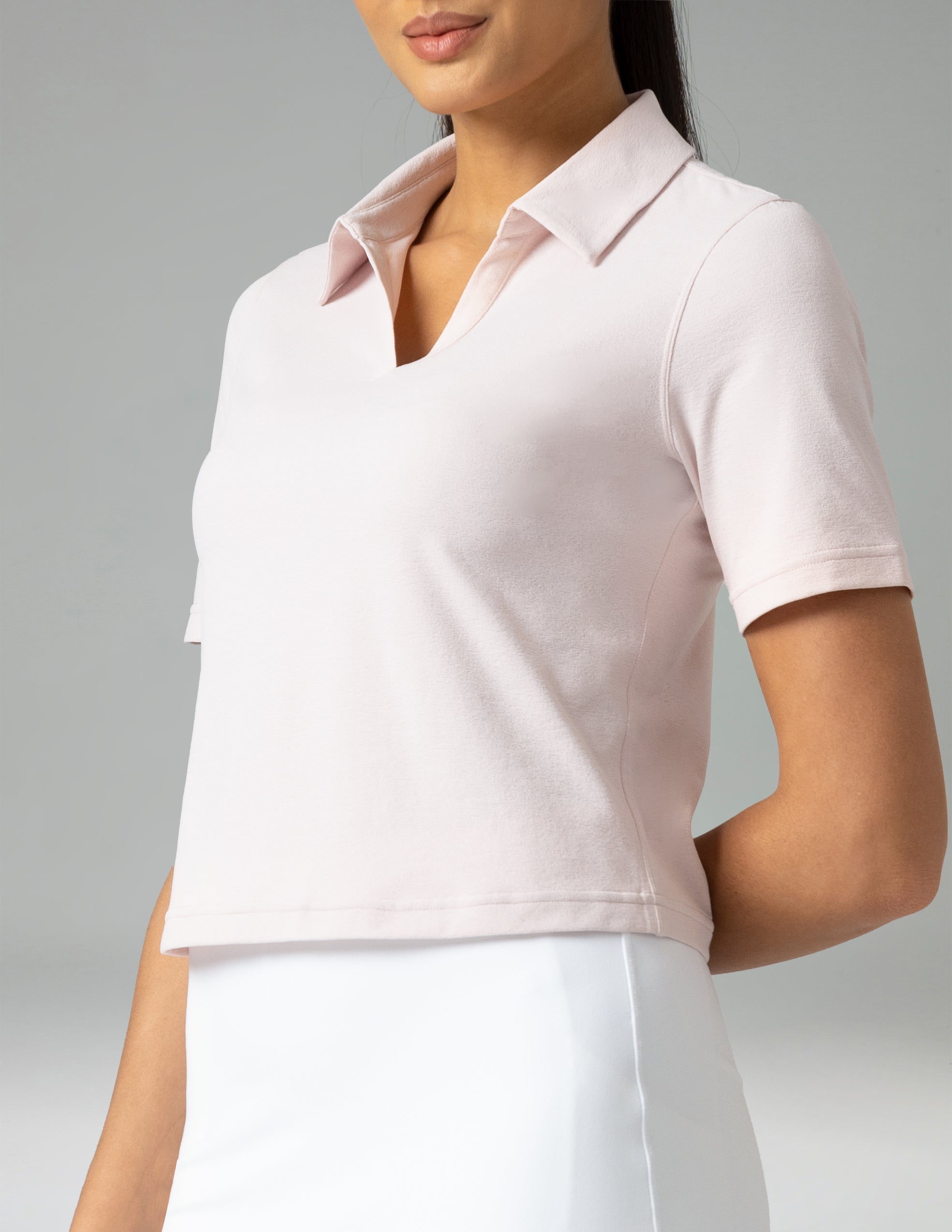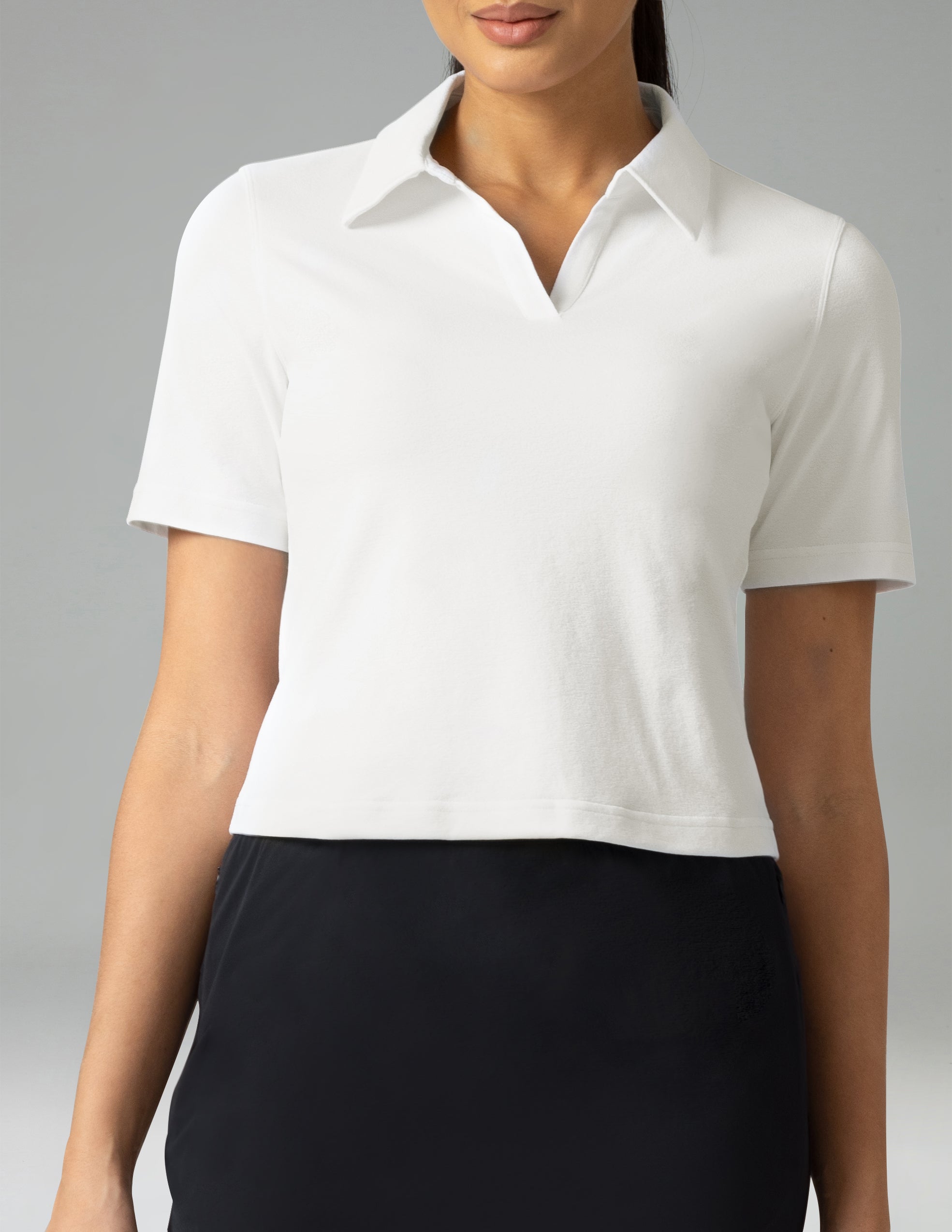Sorona V-Neck Cropped Polo Shirt – Relaxed Fit