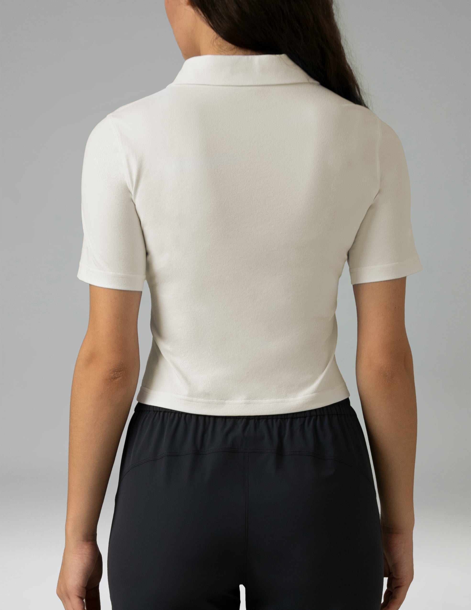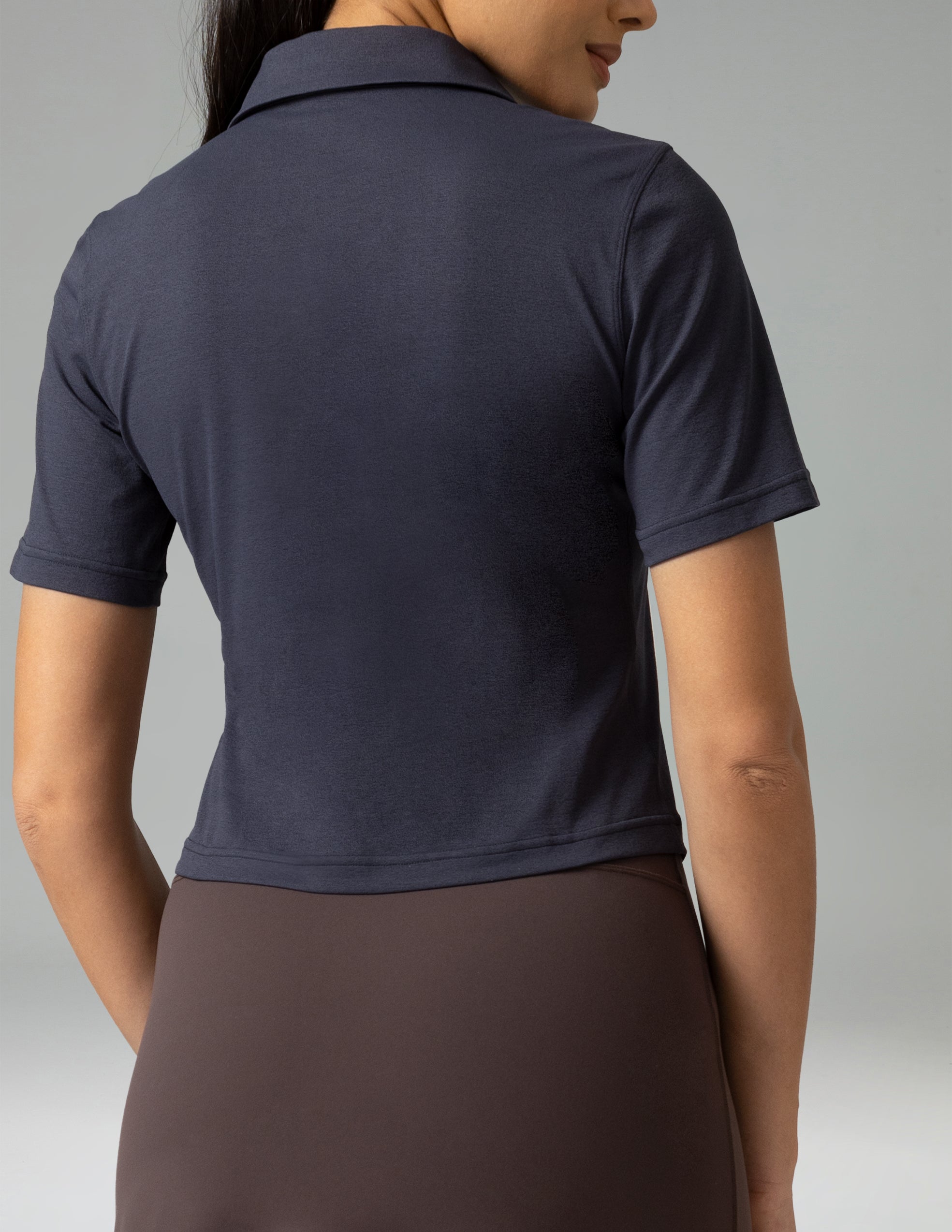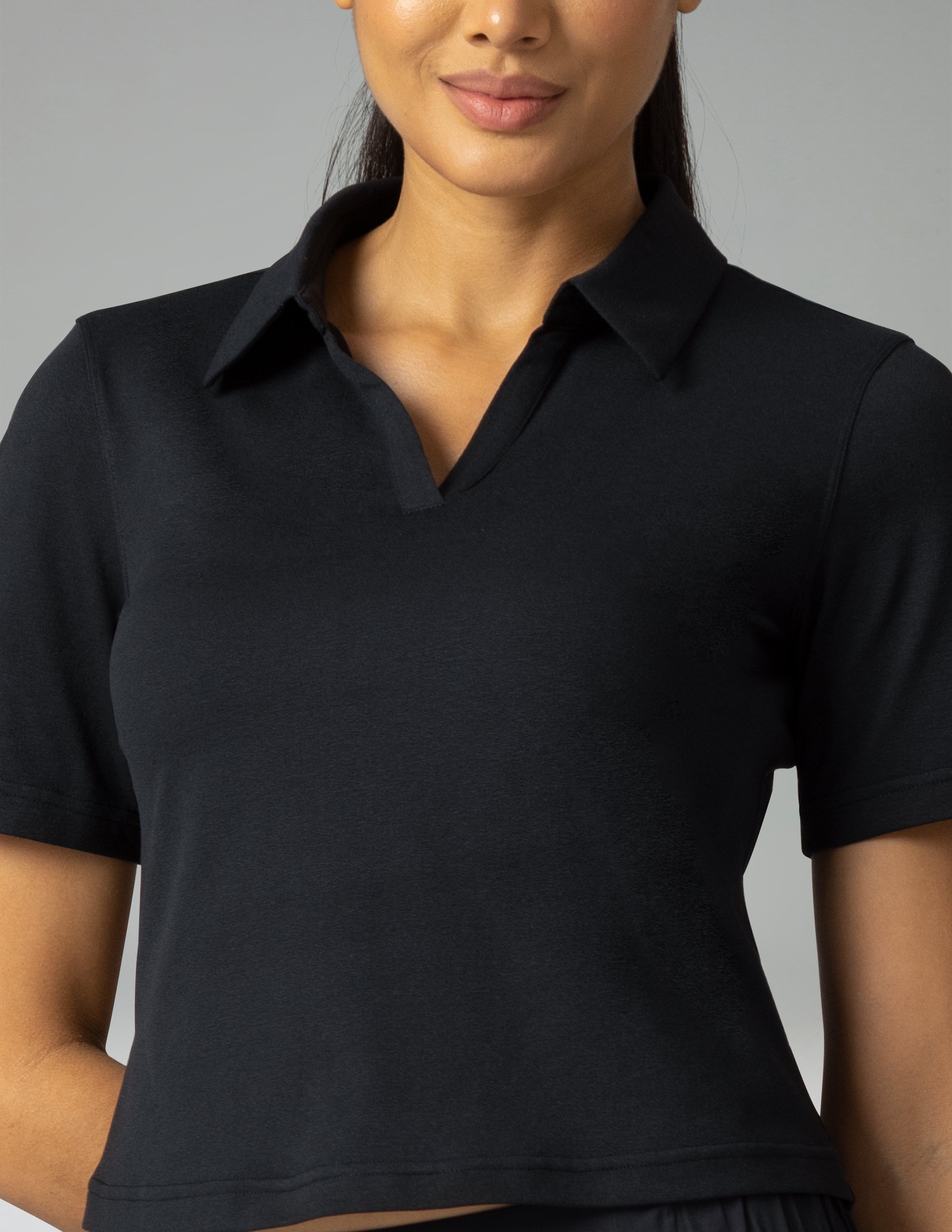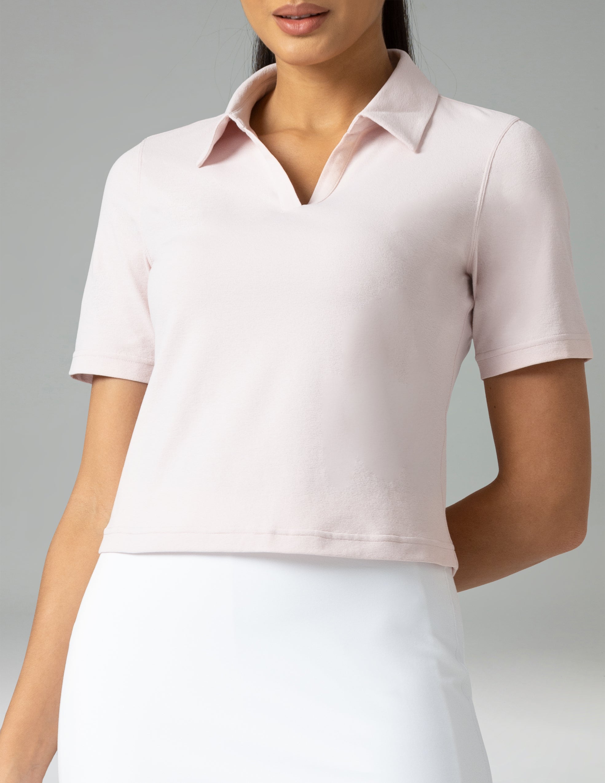 Sorona V-Neck Cropped Polo Shirt – Relaxed Fit