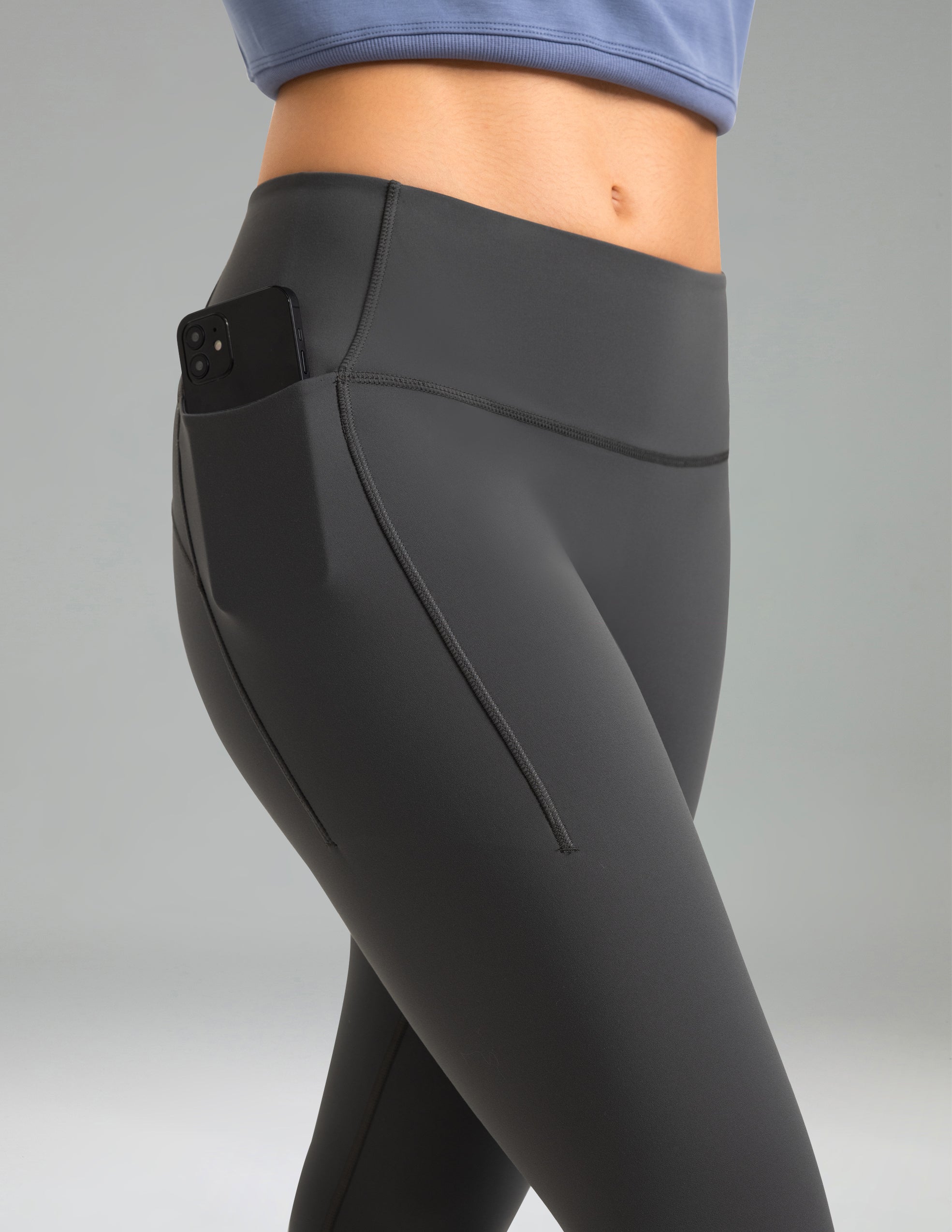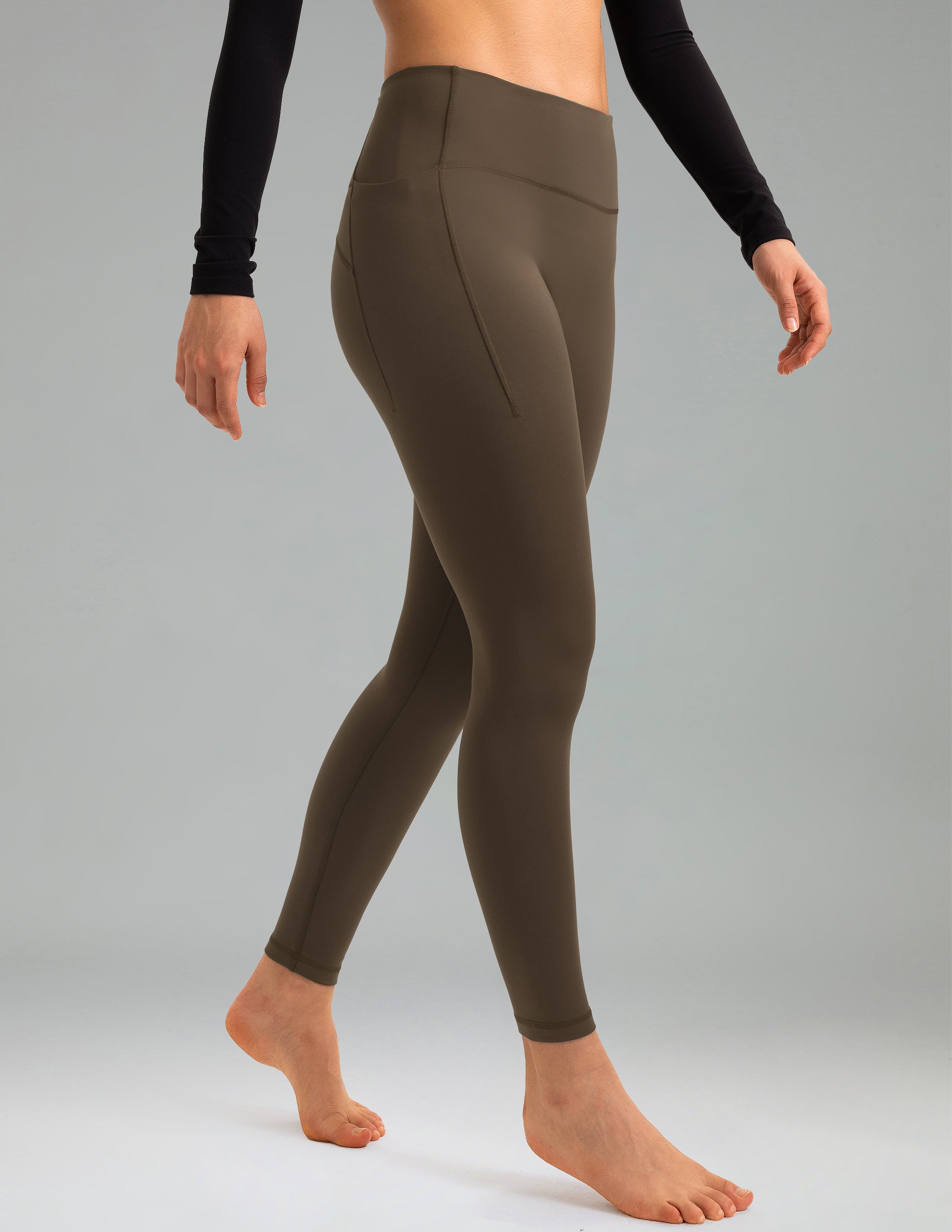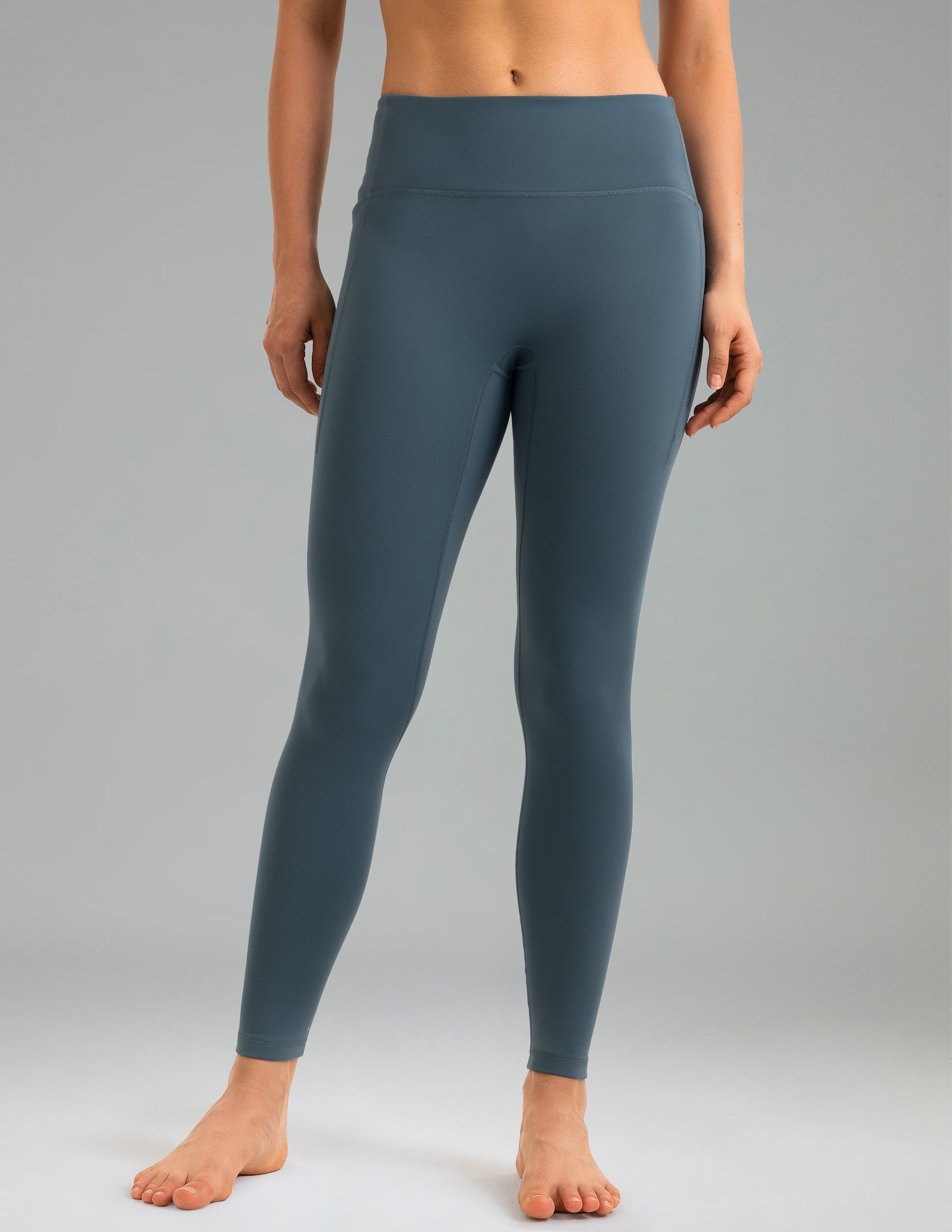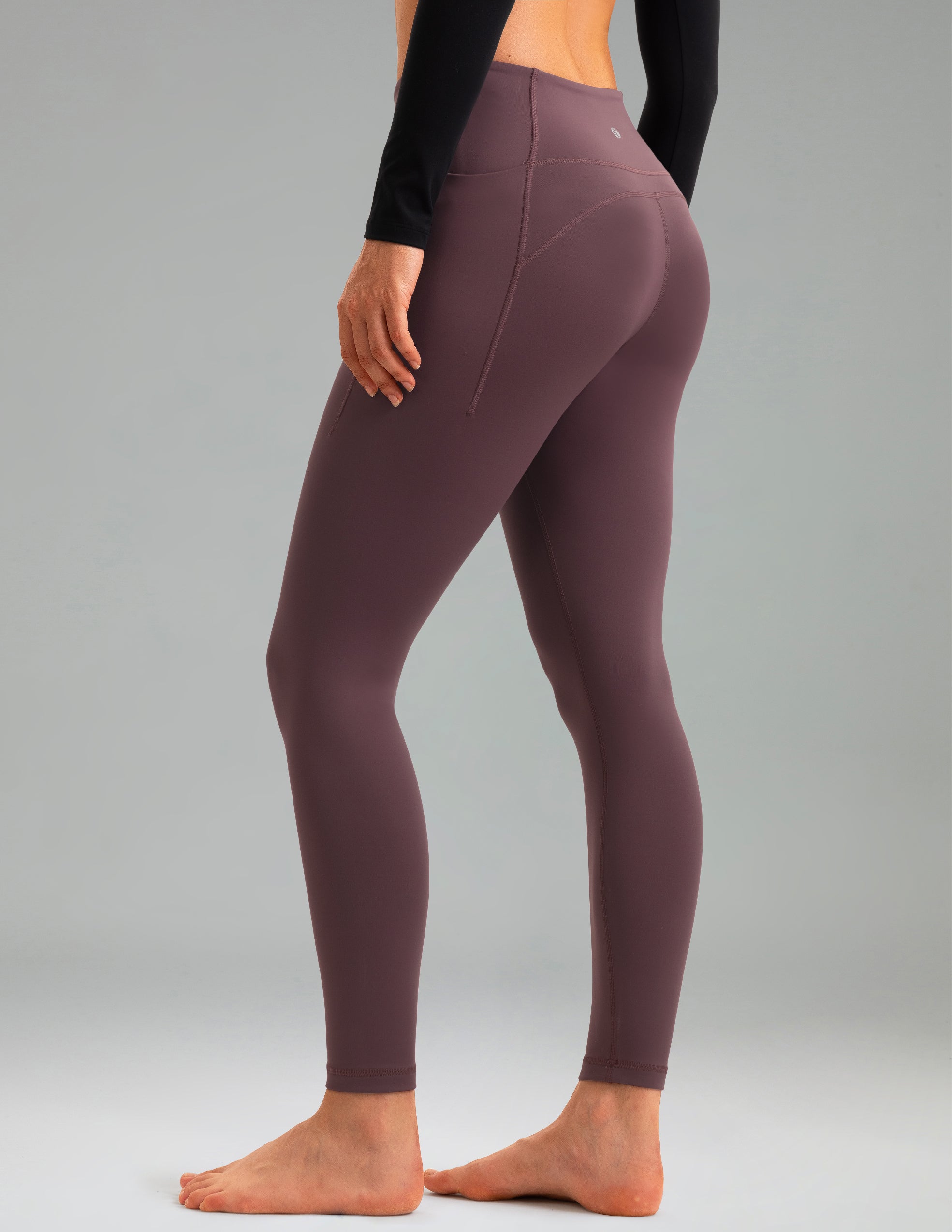 Fleece Lined No Front Seam 26.5" Thermal Leggings w/ Pockets