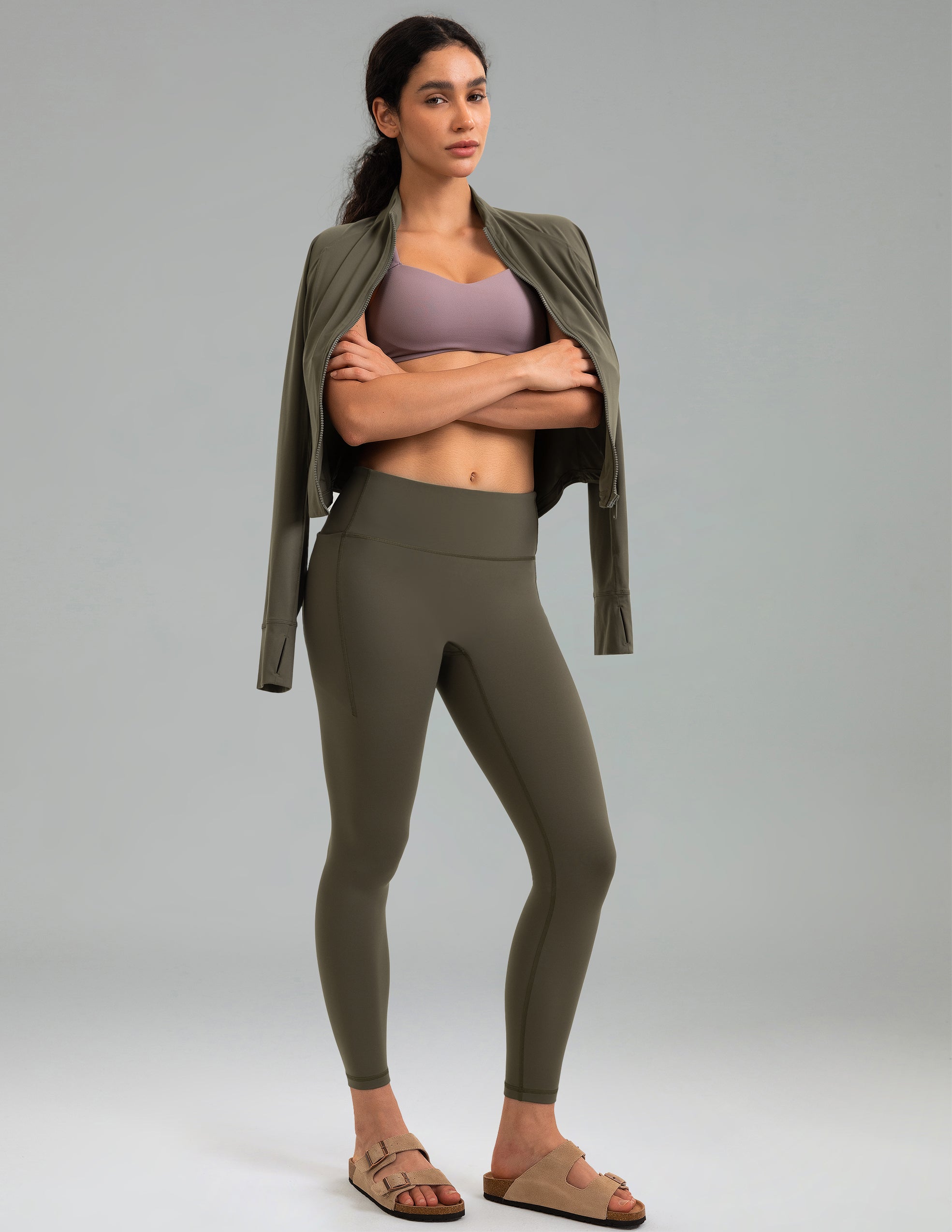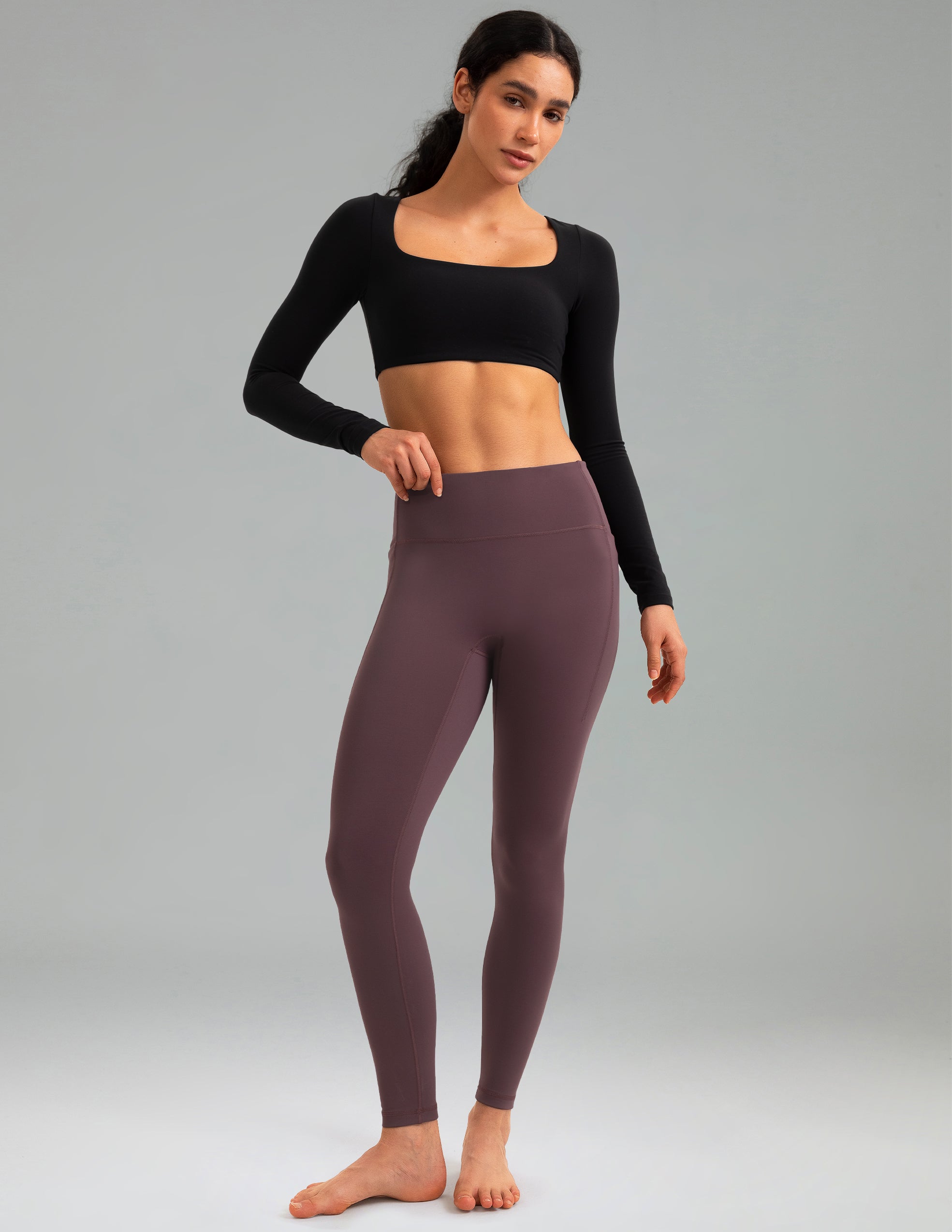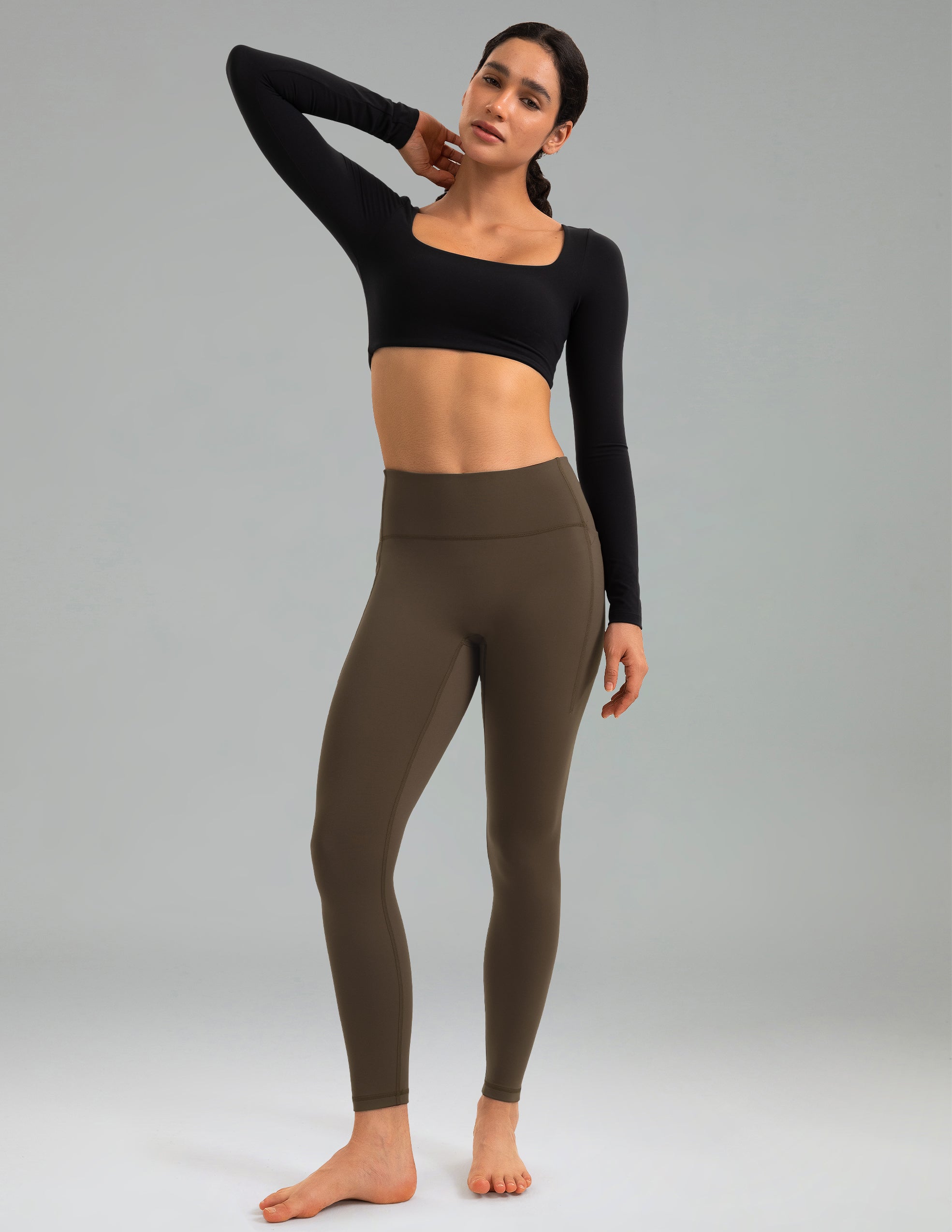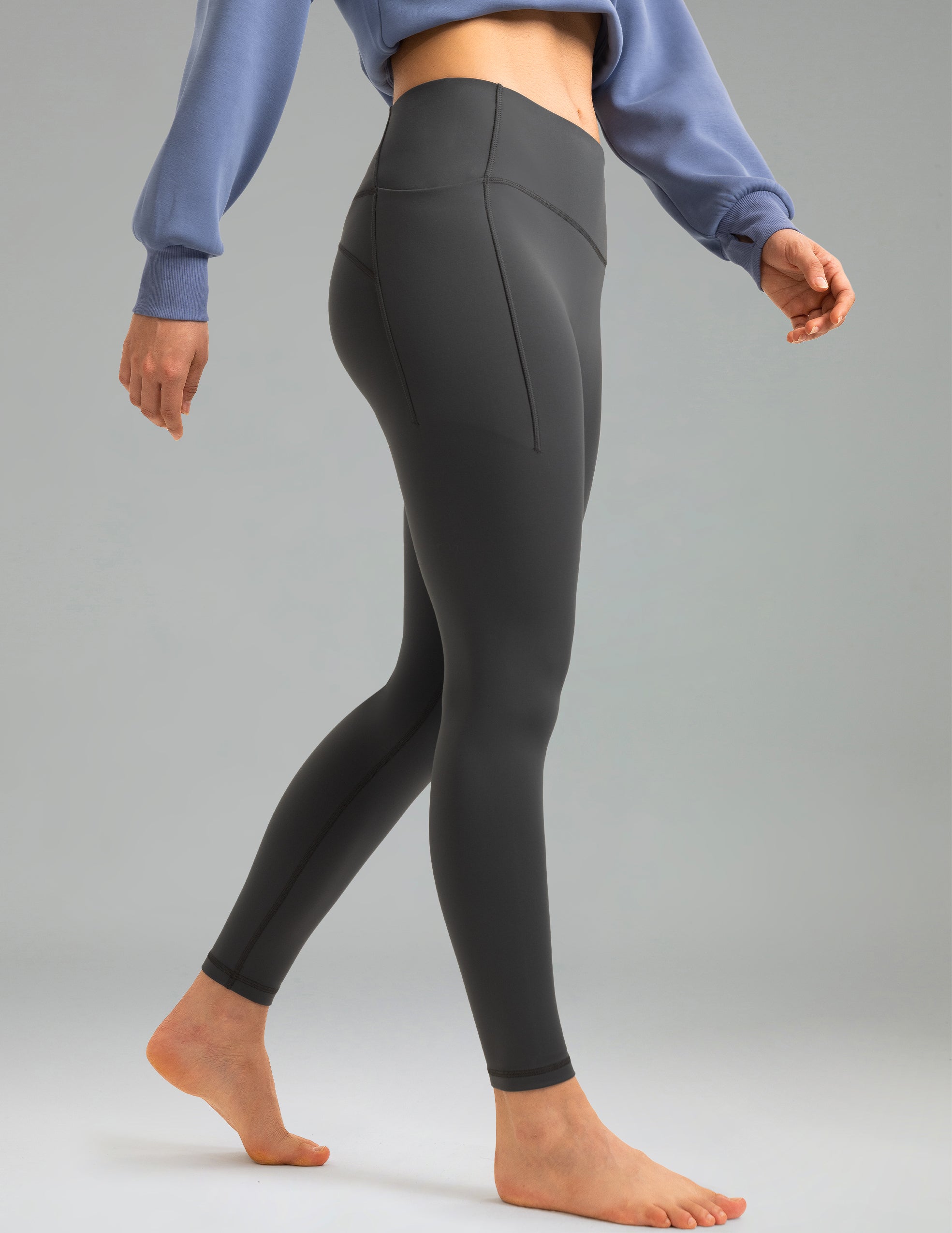 Fleece Lined No Front Seam 26.5" Thermal Leggings w/ Pockets