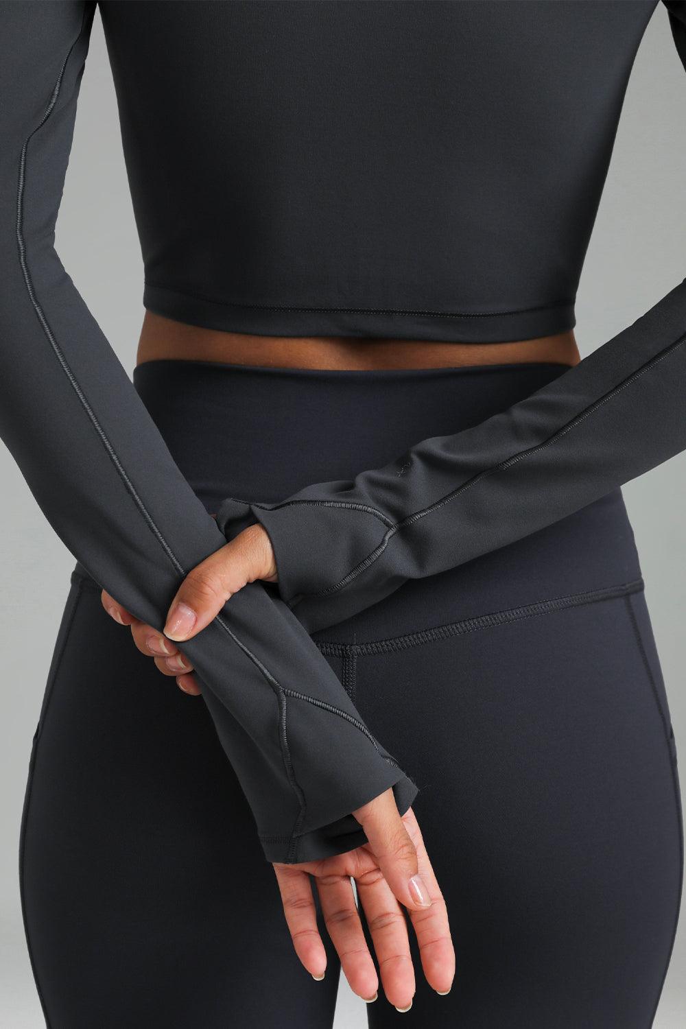• Elastic long sleeves with built-in thumbholes provide a secure fit and stay in place during workouts or runs.