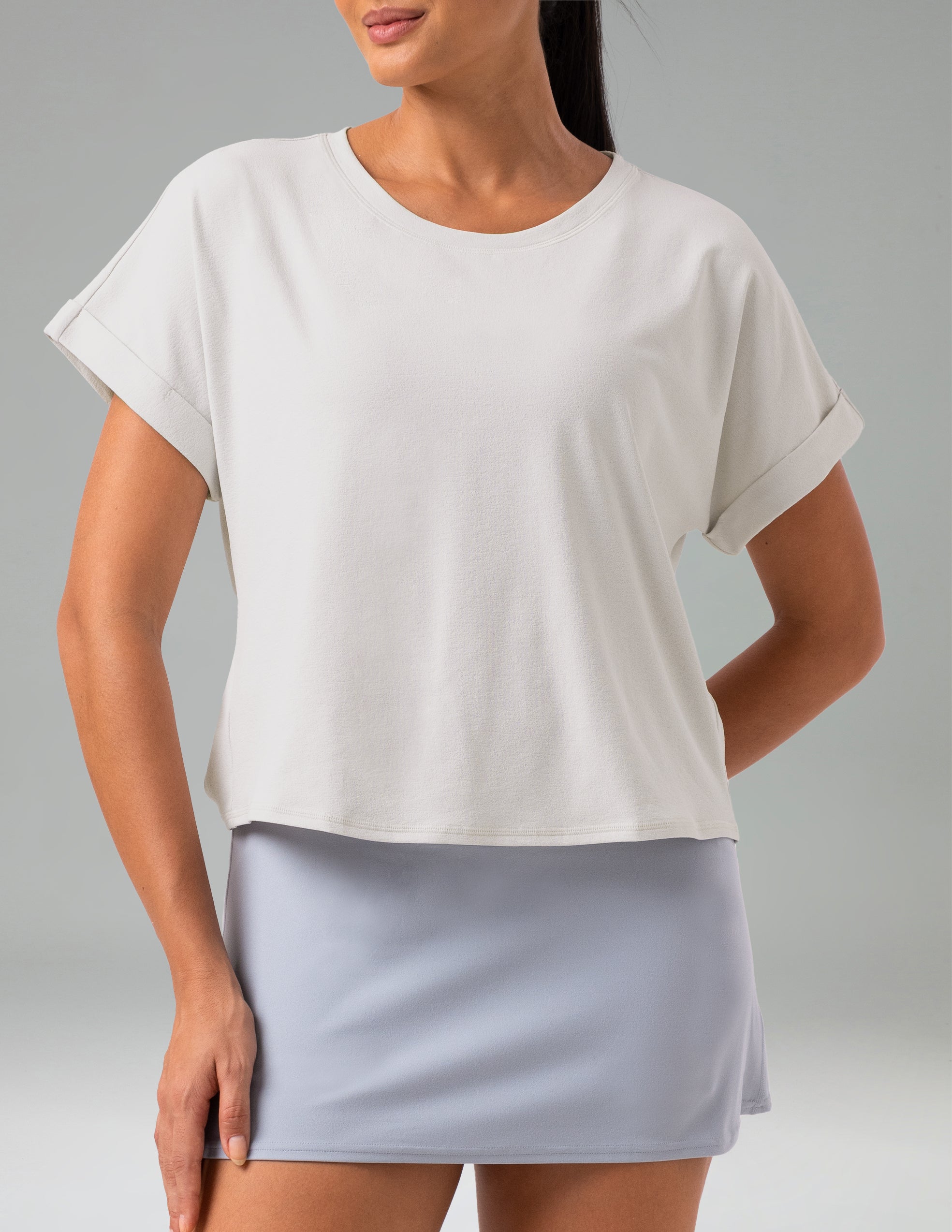• Mid-length cut offers strong adaptability, perfect to pair with high-waisted leggings or shorts.