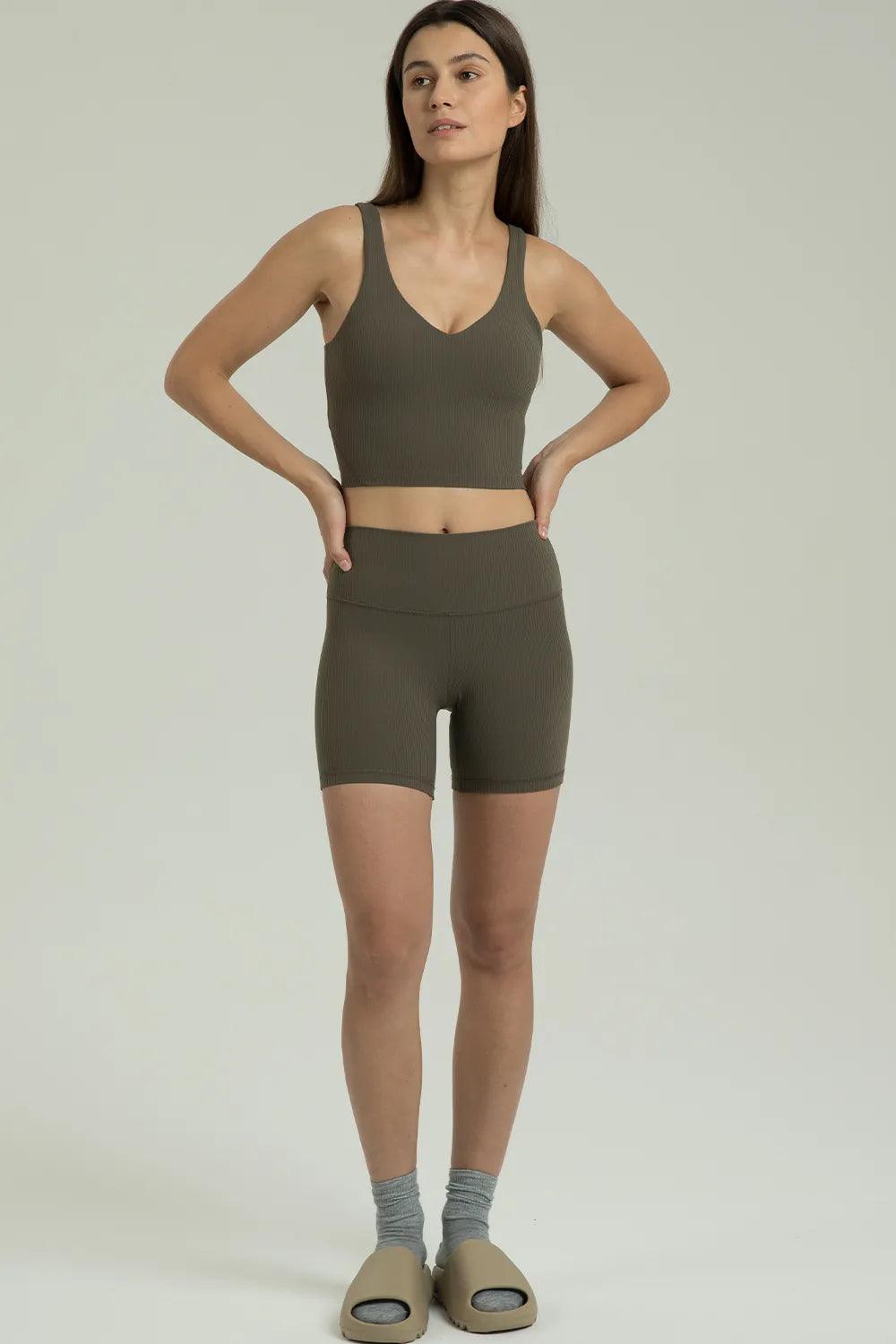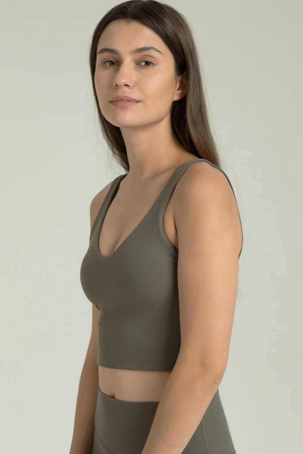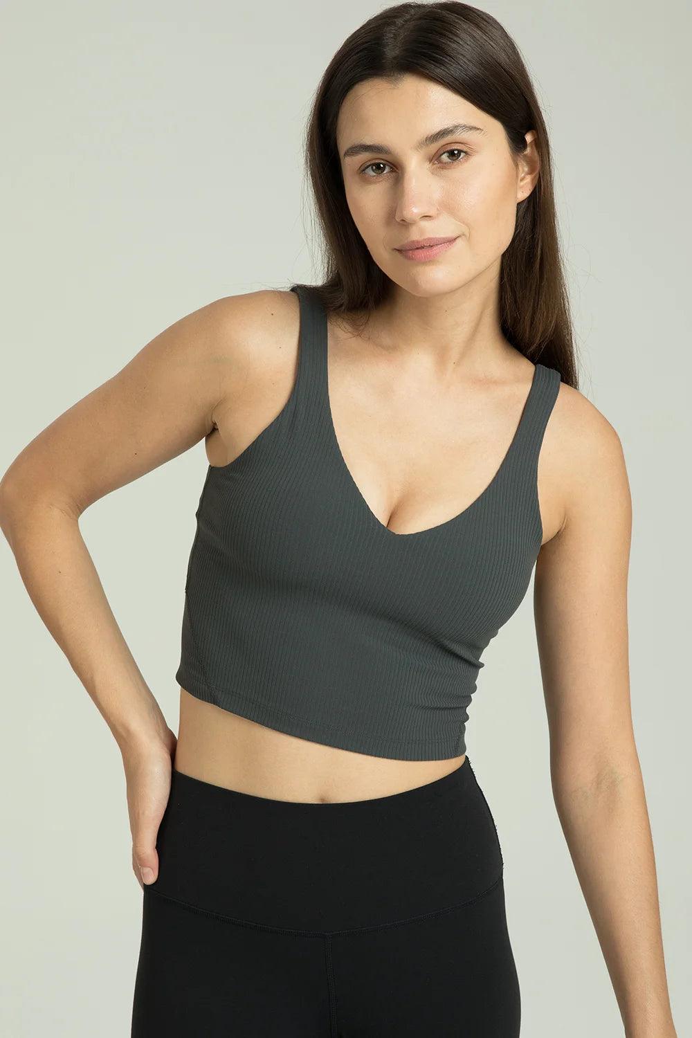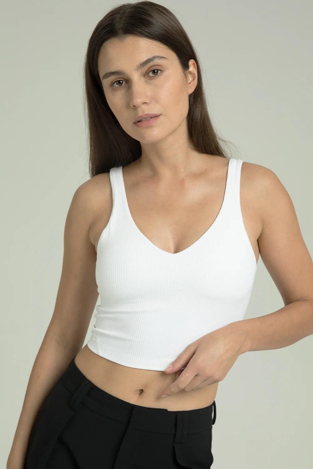 Geripptes, kurzes Tanktop mit V-Ausschnitt von Dreamlux