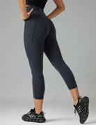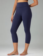 - 21" capri leggings designed for yoga, pilates, and everyday wear, offering versatile comfort from studio to street.