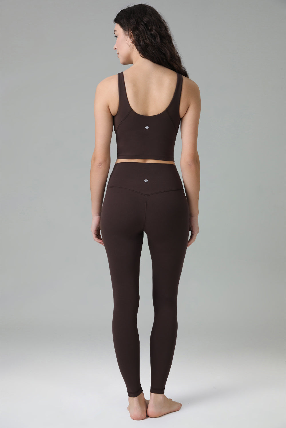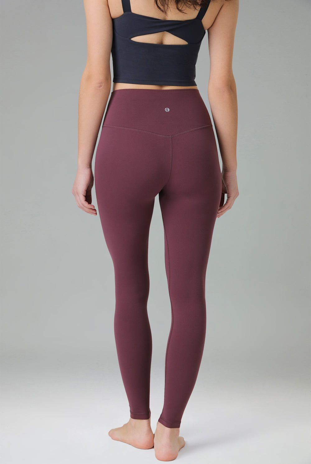 High-waisted, no-front-seam yoga leggings with a 25" inseam. Featuring white contrast side stripes for a retro ‘90s vibe. The back V-shaped seam enhances your curves, while the contouring fit subtly lifts and flatters your silhouette.