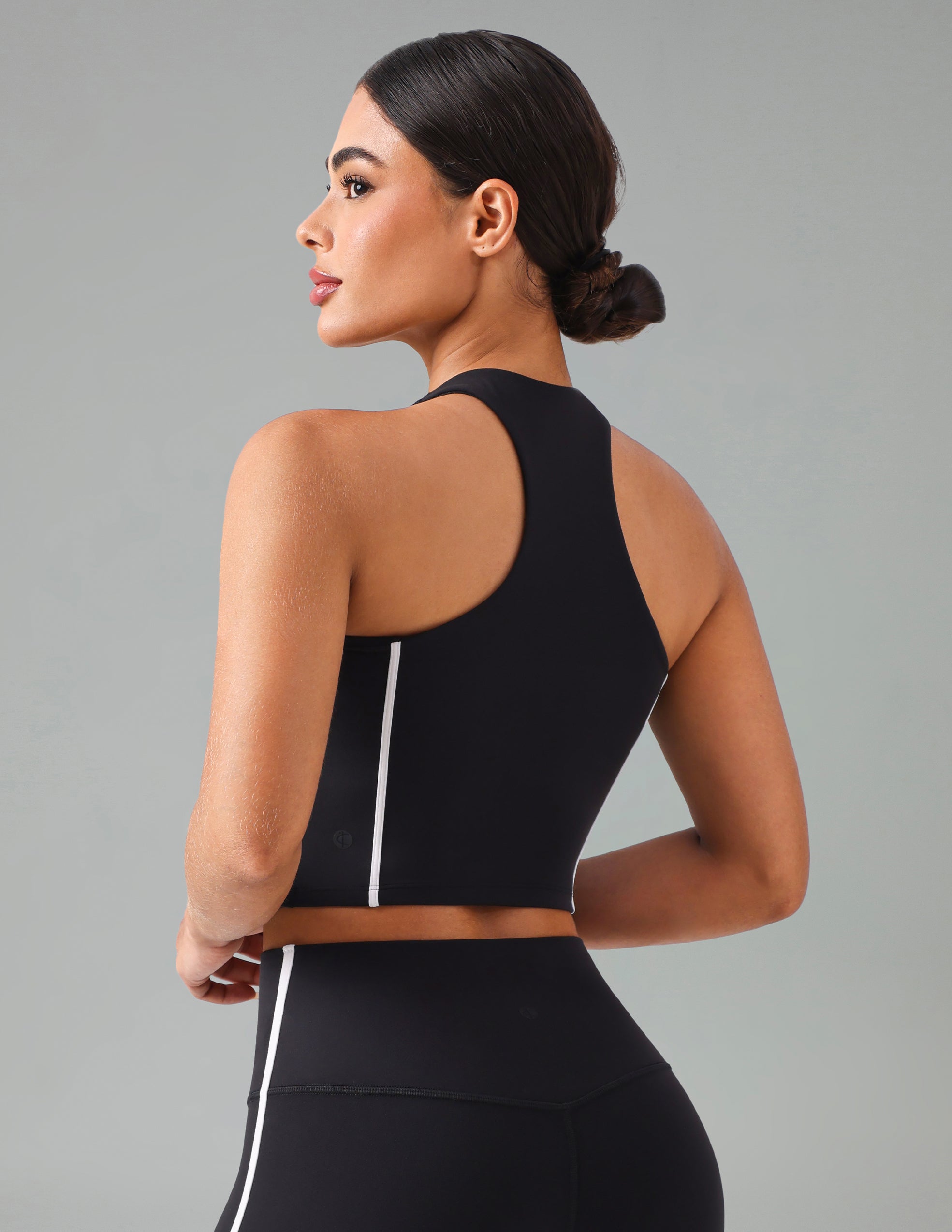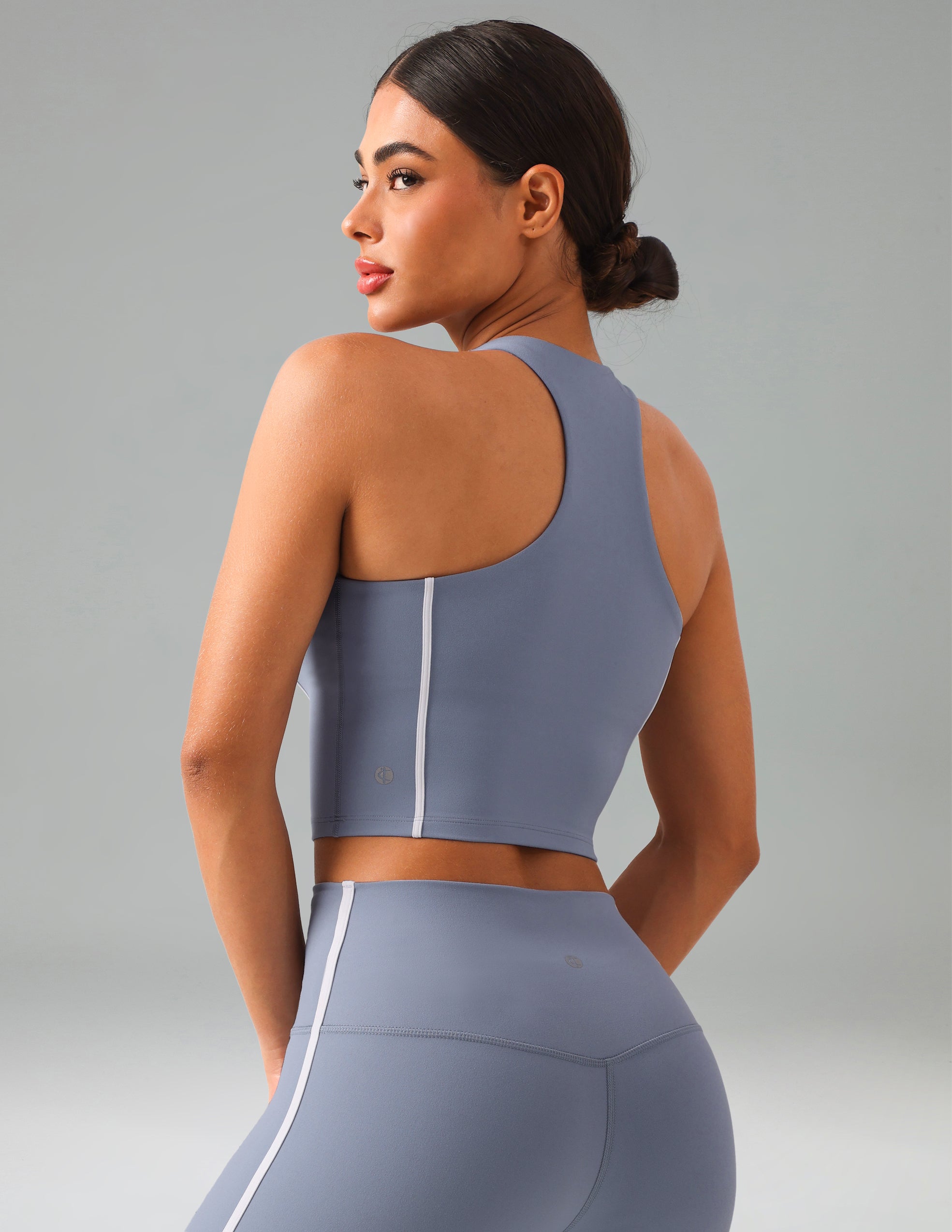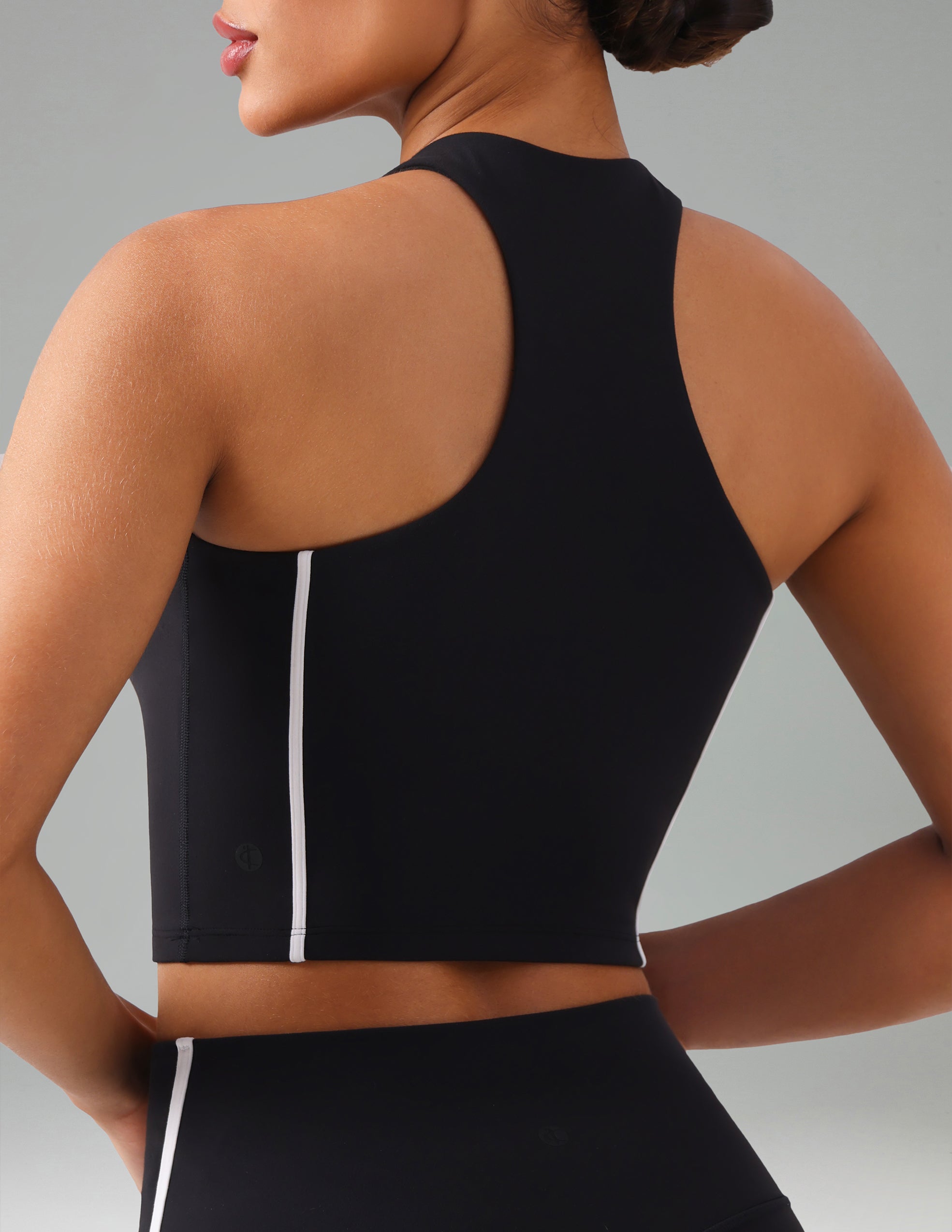 Dreamlux Cropped Racerback Tank Tops w/ Contrast Stripes