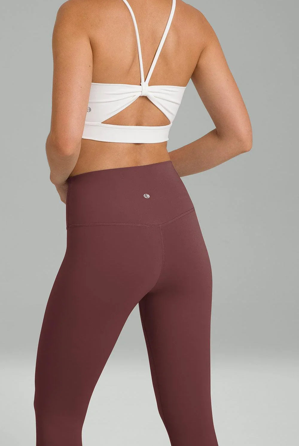 High-waisted, no-front-seam yoga leggings with a 25" inseam. Featuring white contrast side stripes for a retro ‘90s vibe. The back V-shaped seam enhances your curves, while the contouring fit subtly lifts and flatters your silhouette.