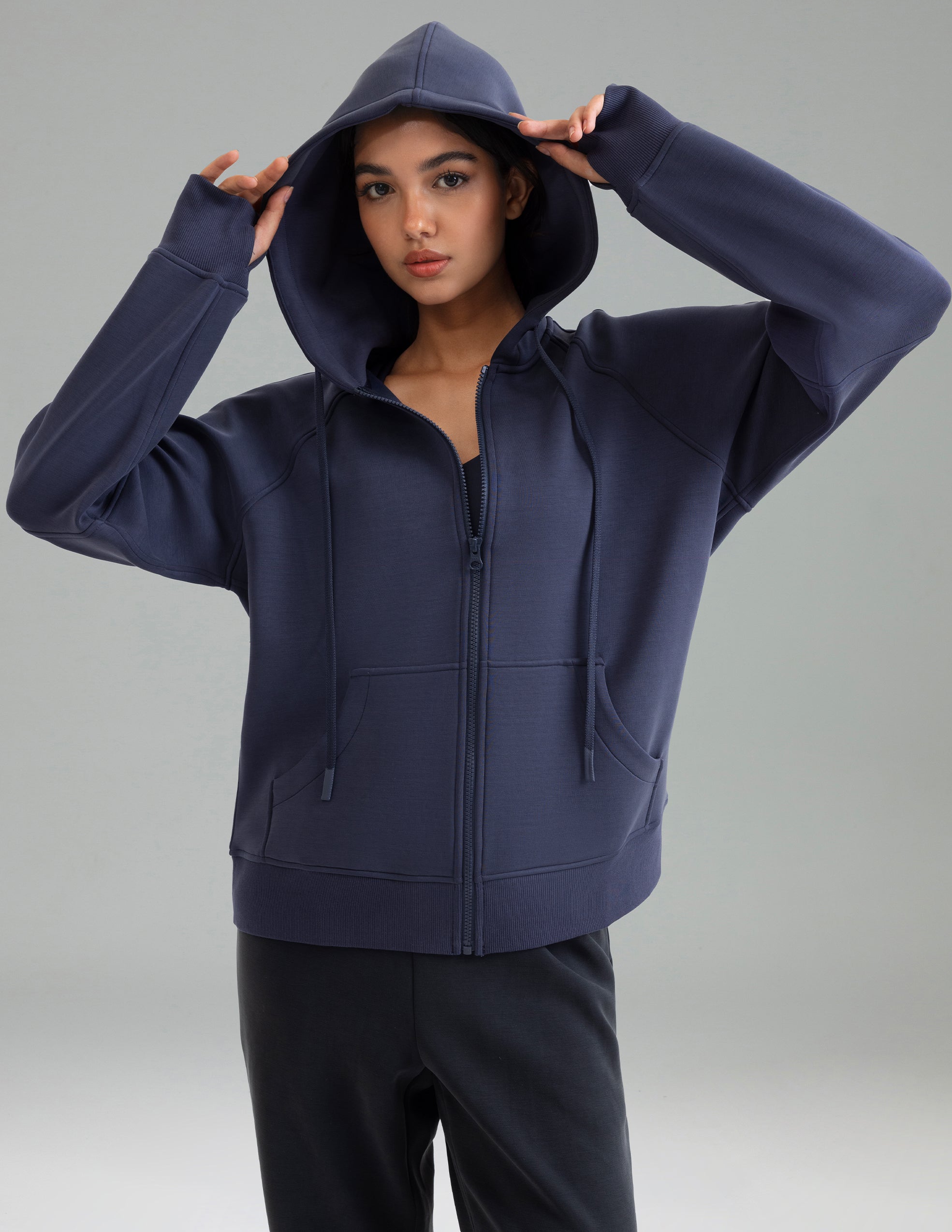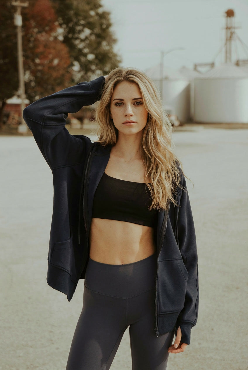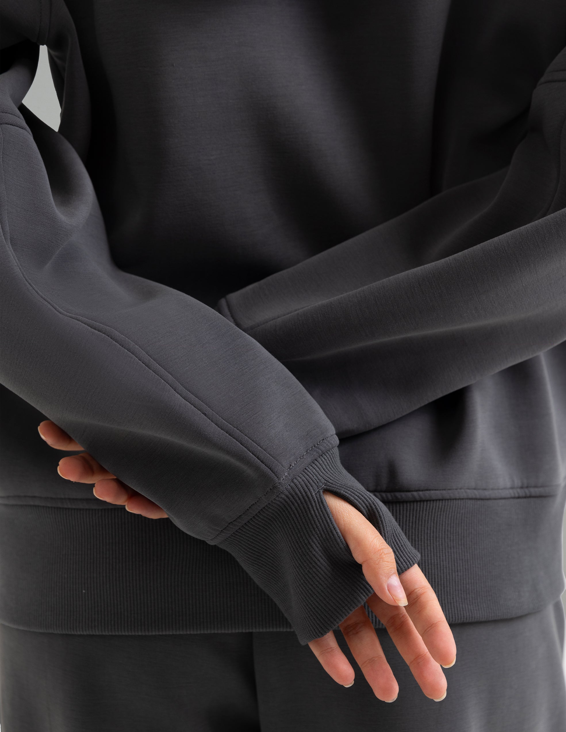 - Thumb Hole Cuffs – practical and stylish, adding warmth while keeping sleeves in place.