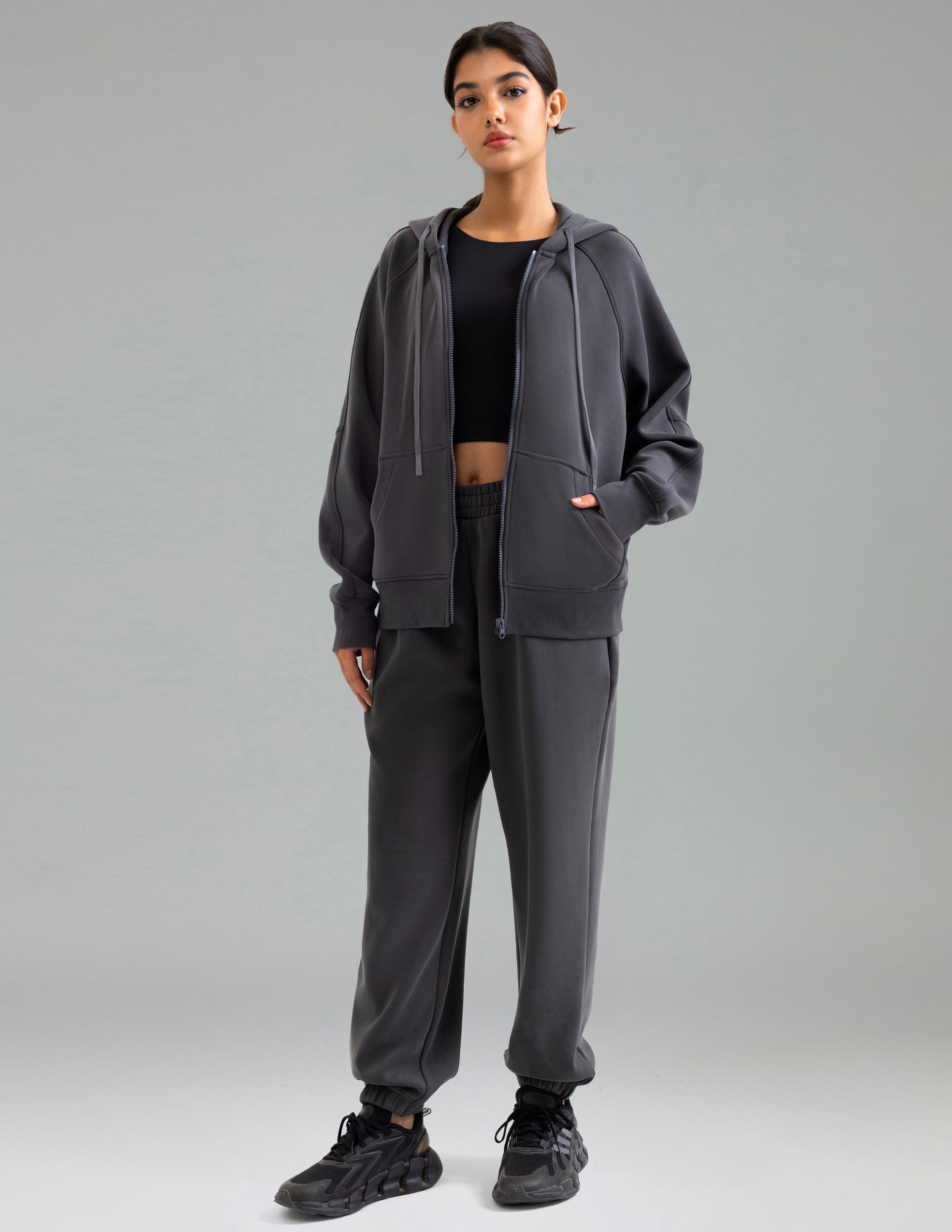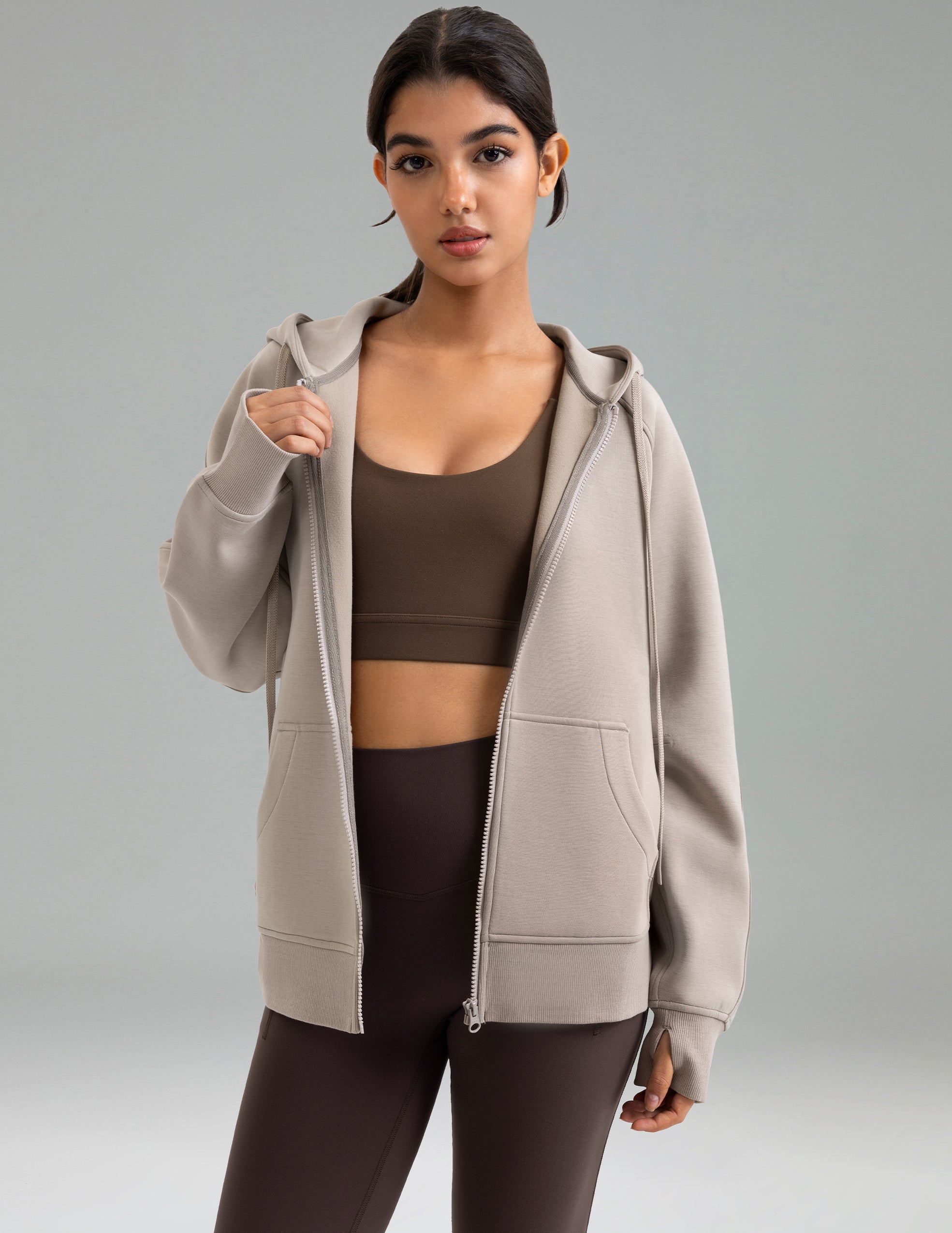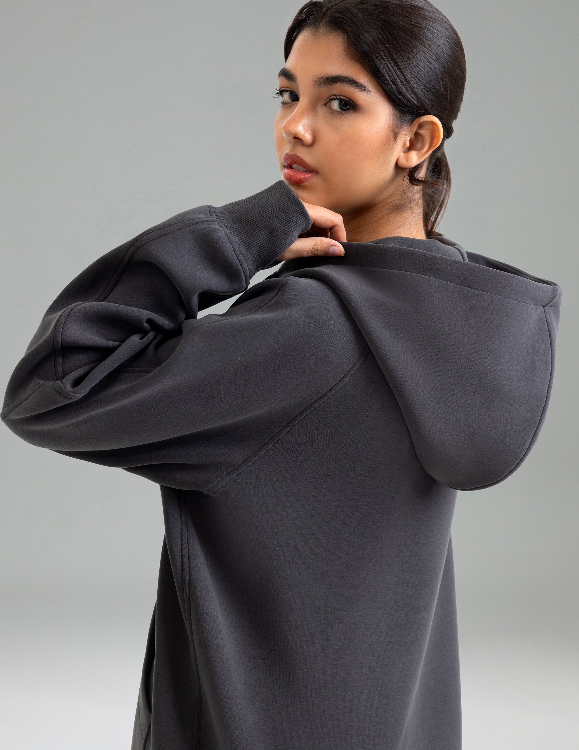 - Thumb Hole Cuffs – practical and stylish, adding warmth while keeping sleeves in place.