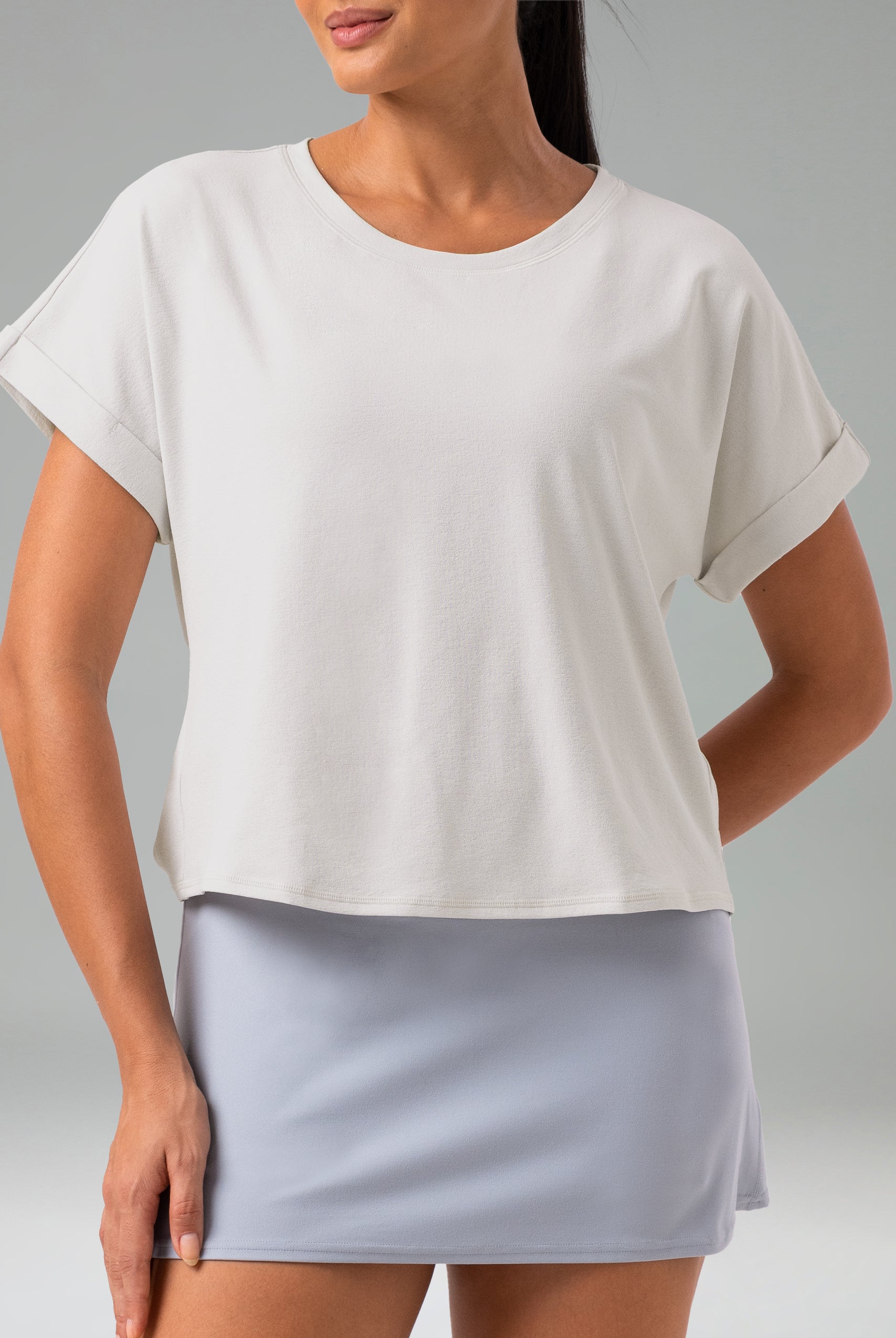 Dreamlux Short Sleeve Cropped Workout Shirts w/ Crisscross Back