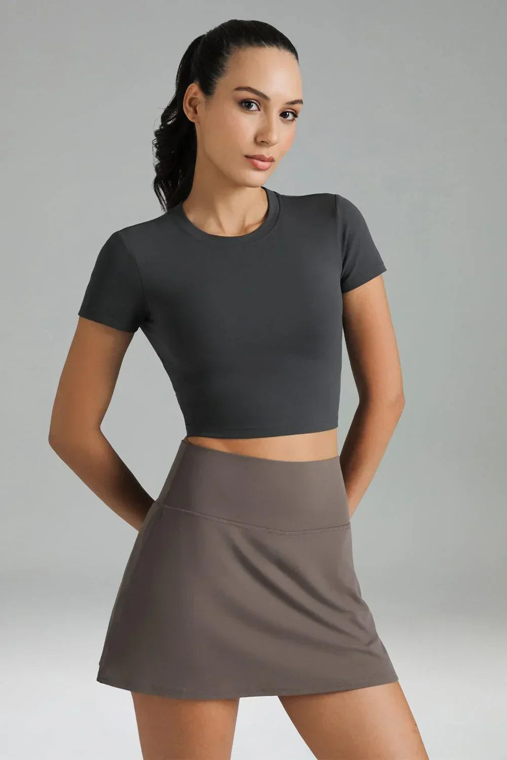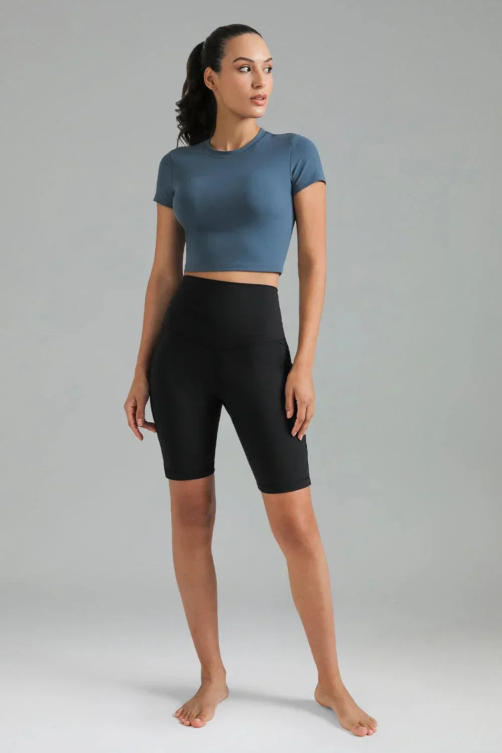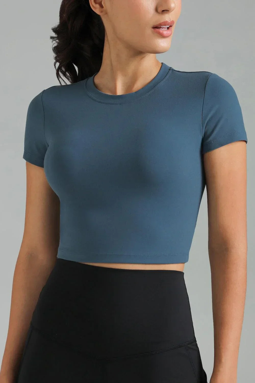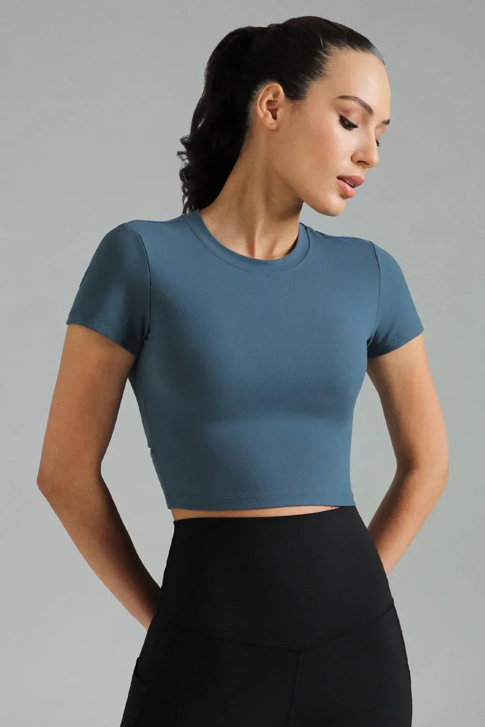Lightweight and breathable, this short-sleeve cropped workout shirt keeps you cool and comfortable during running, dancing, or everyday wear.