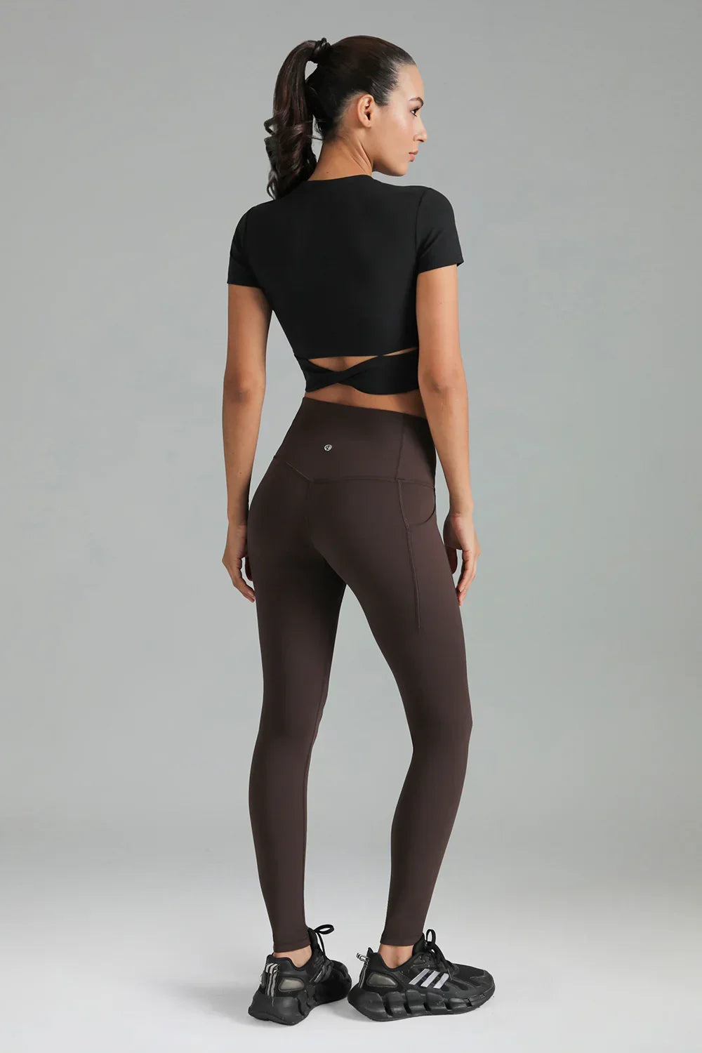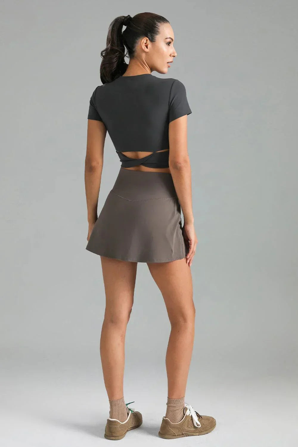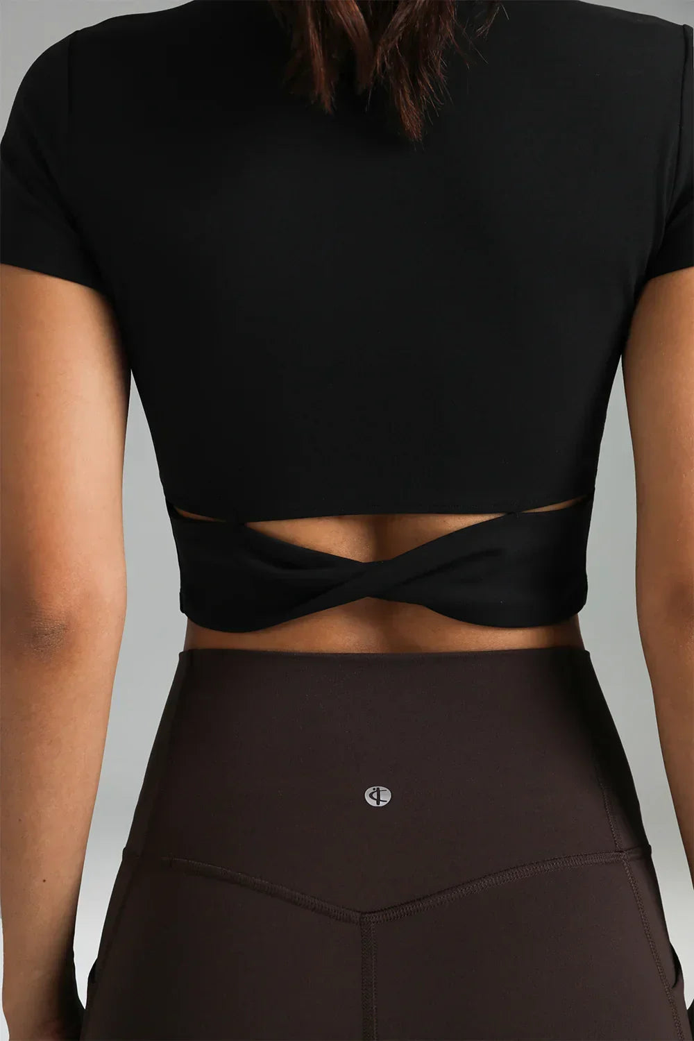 Dreamlux Short Sleeve Cropped Workout Shirt w/ Crisscross Back