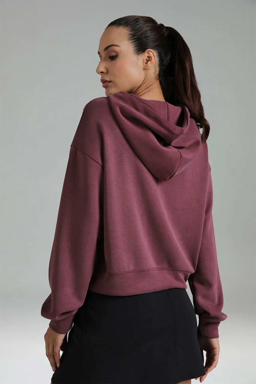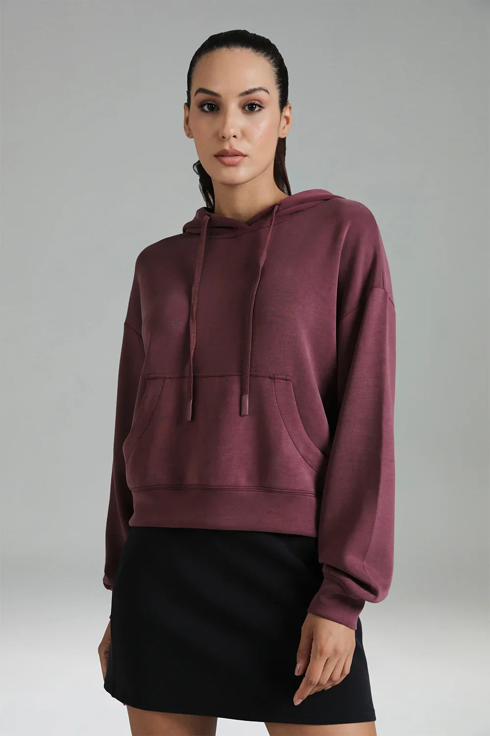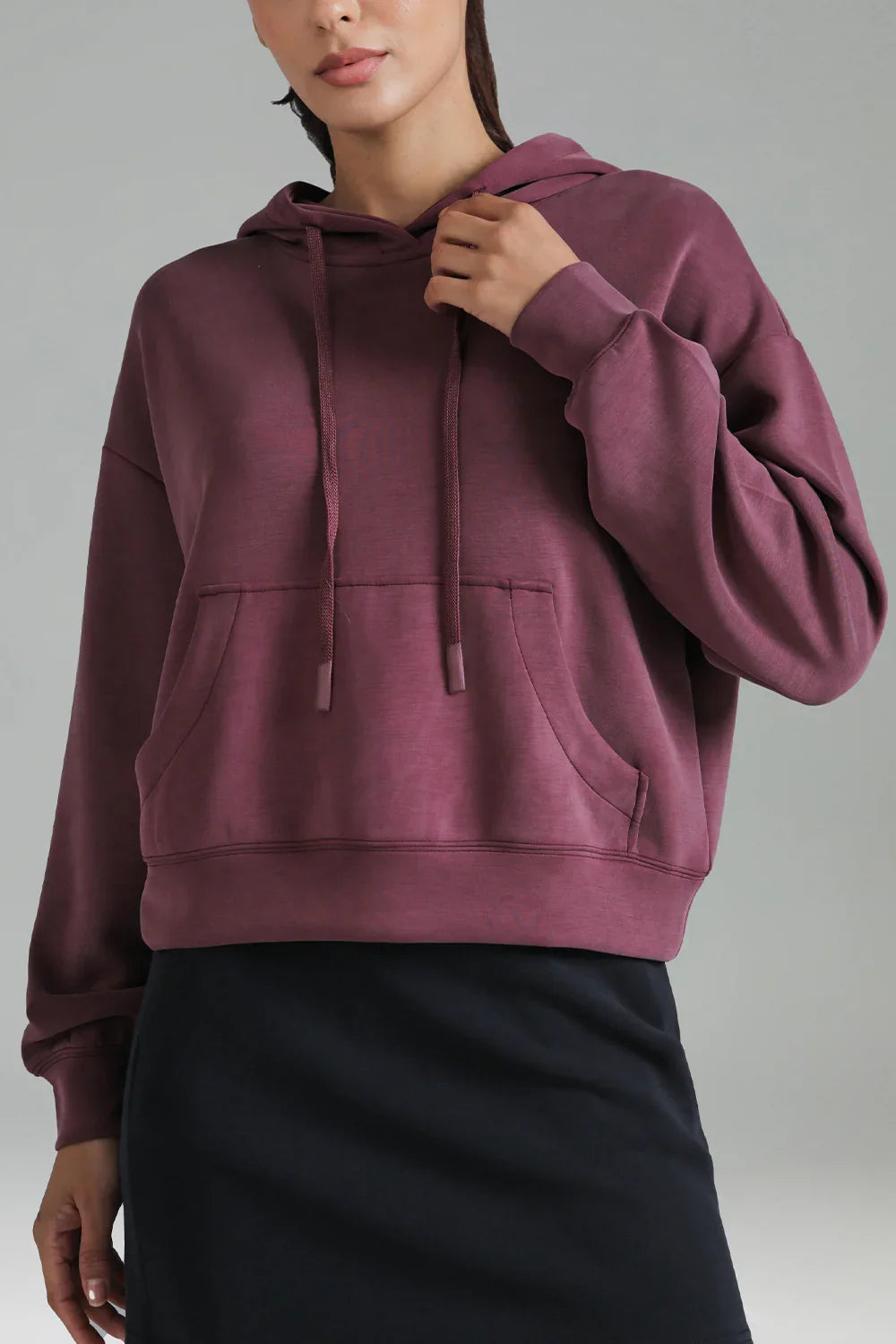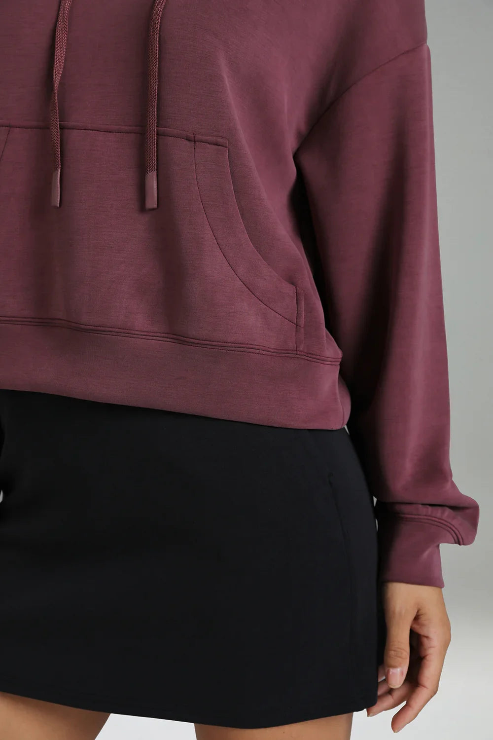 - Crafted from soft and breathable modal fabric, this cropped hoodie offers ultimate comfort and a lightweight feel for everyday wear.