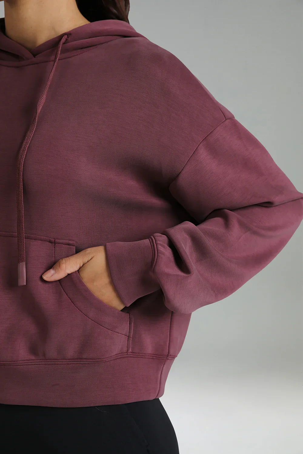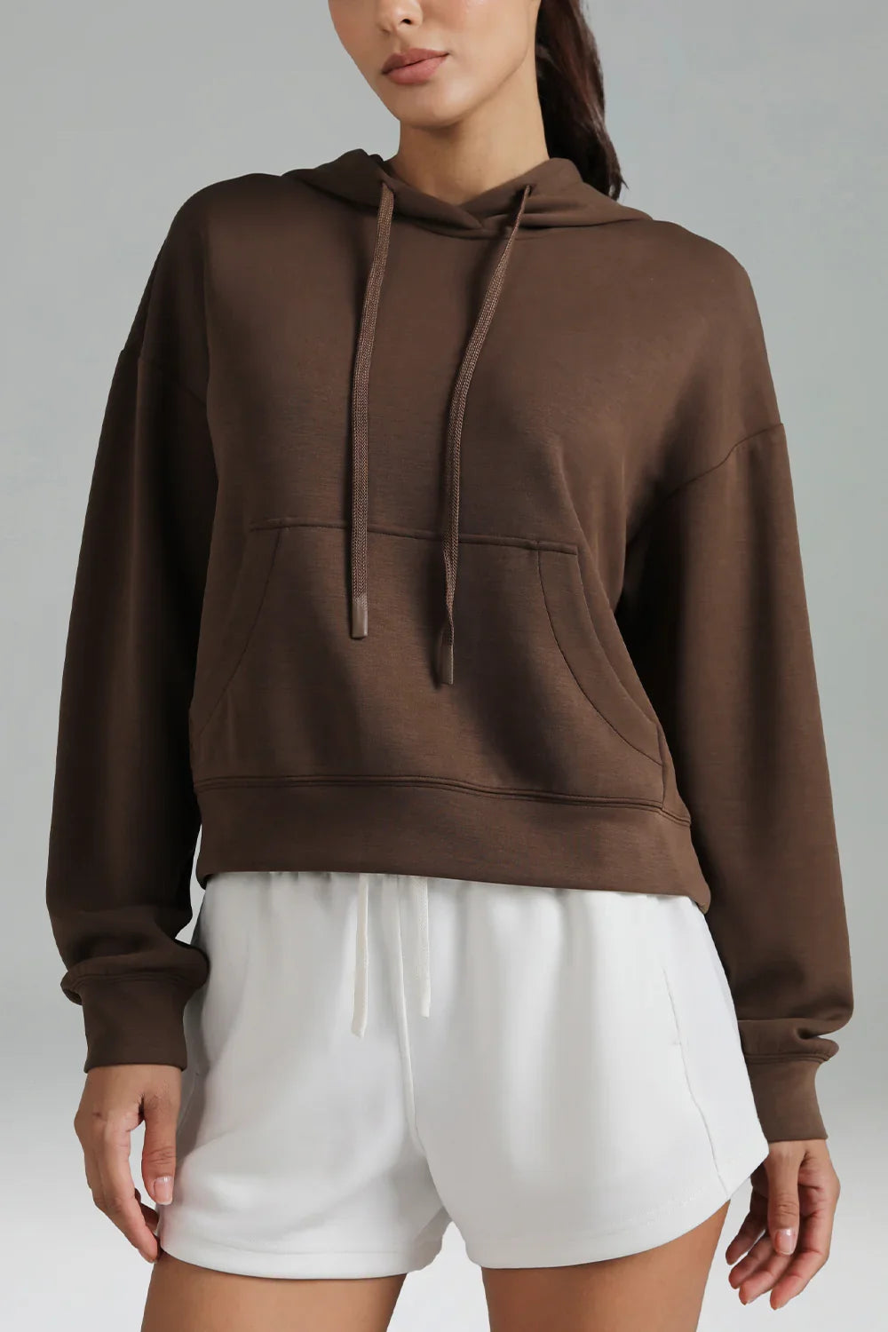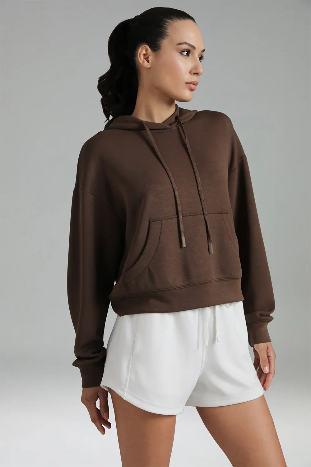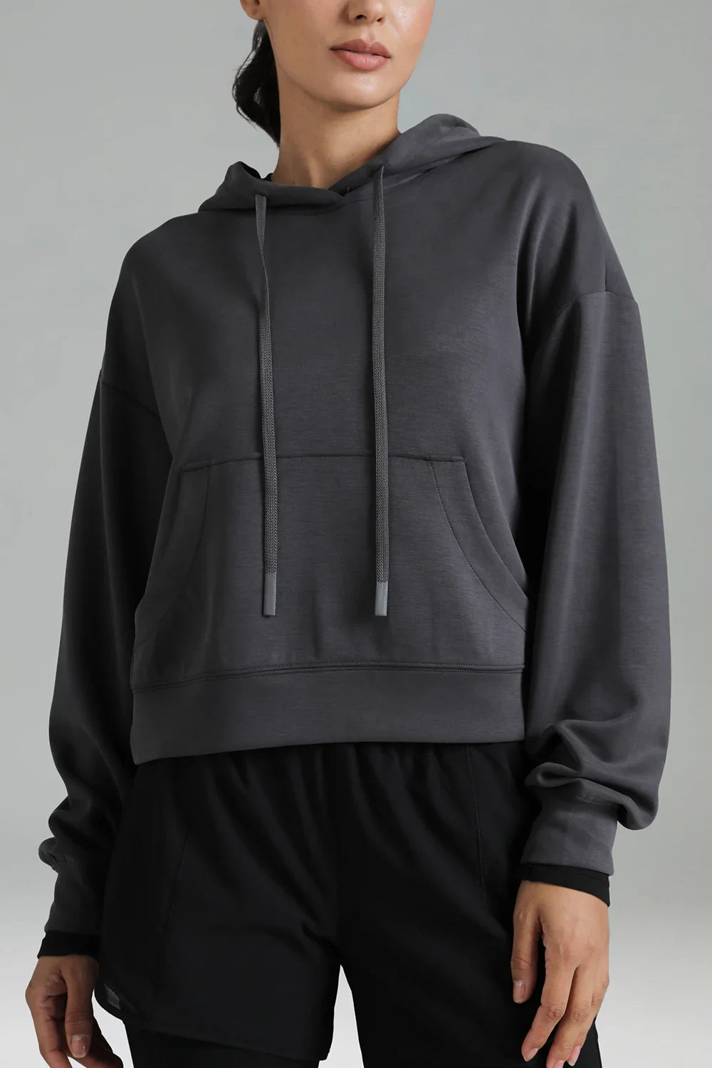 - Crafted from soft and breathable modal fabric, this cropped hoodie offers ultimate comfort and a lightweight feel for everyday wear.