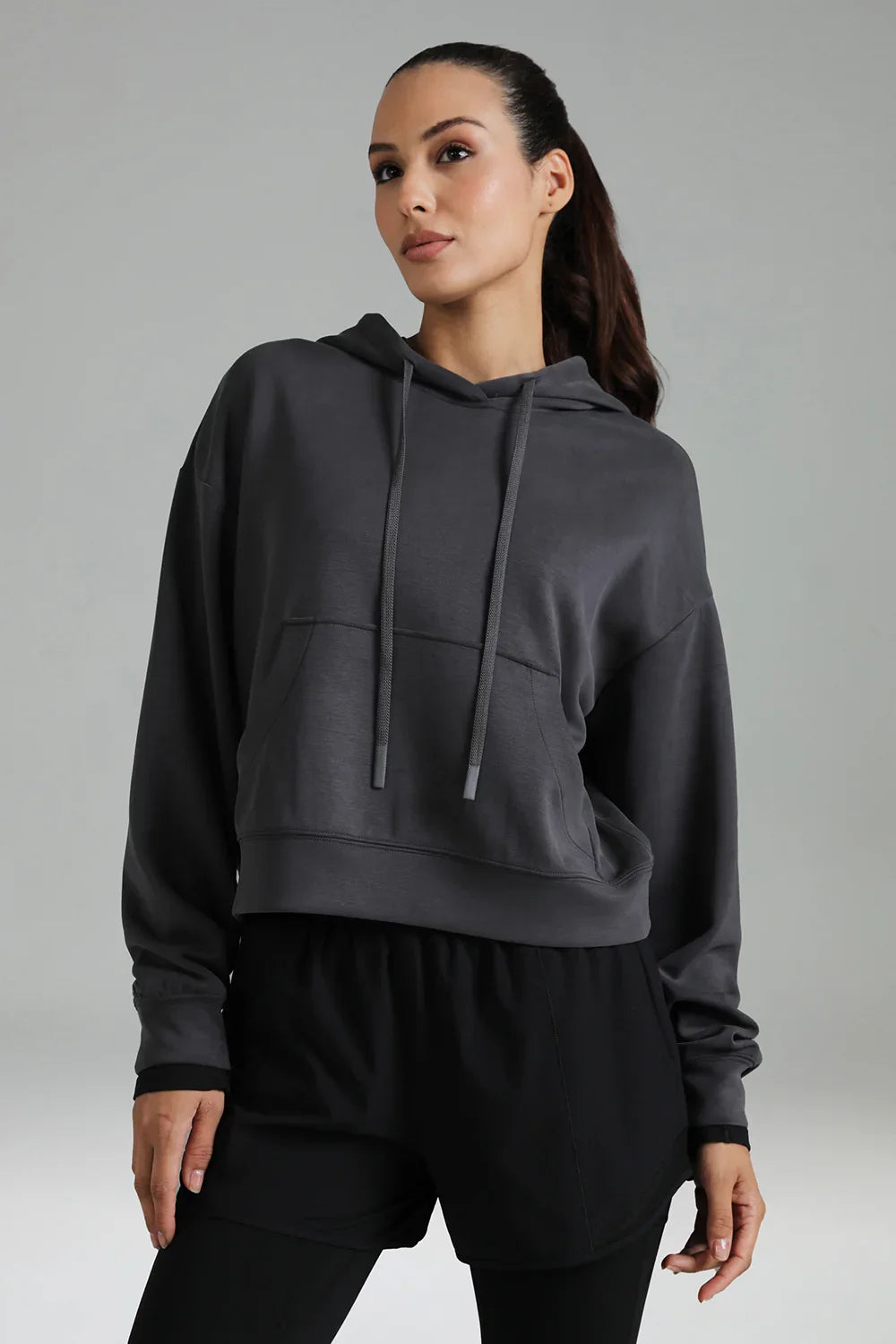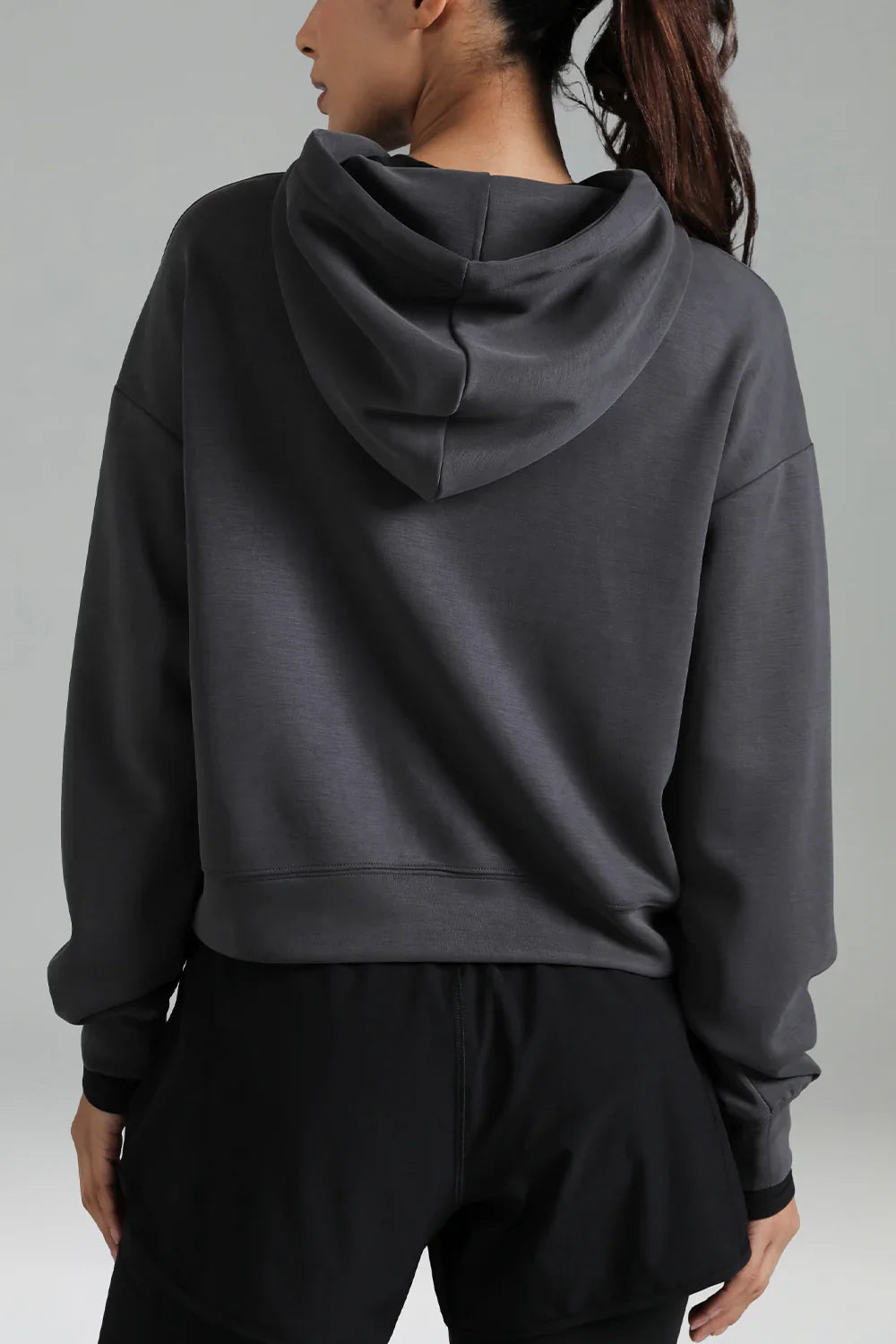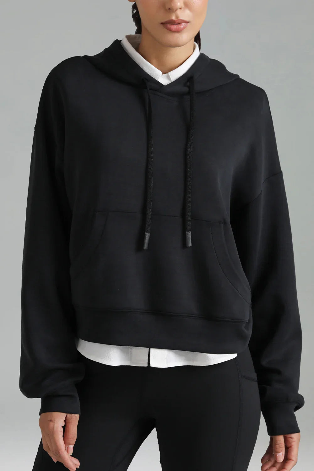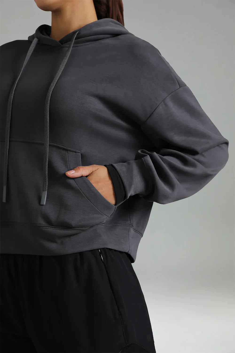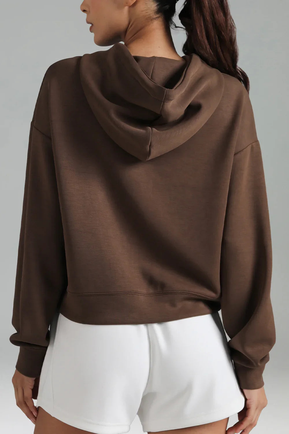 - Crafted from soft and breathable modal fabric, this cropped hoodie offers ultimate comfort and a lightweight feel for everyday wear.