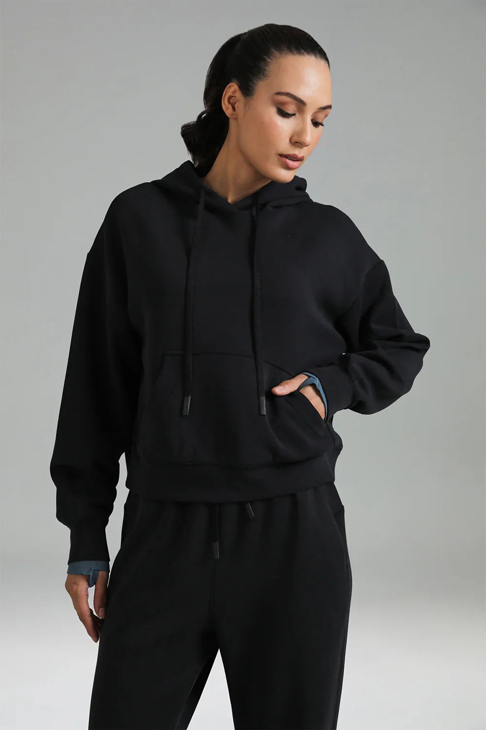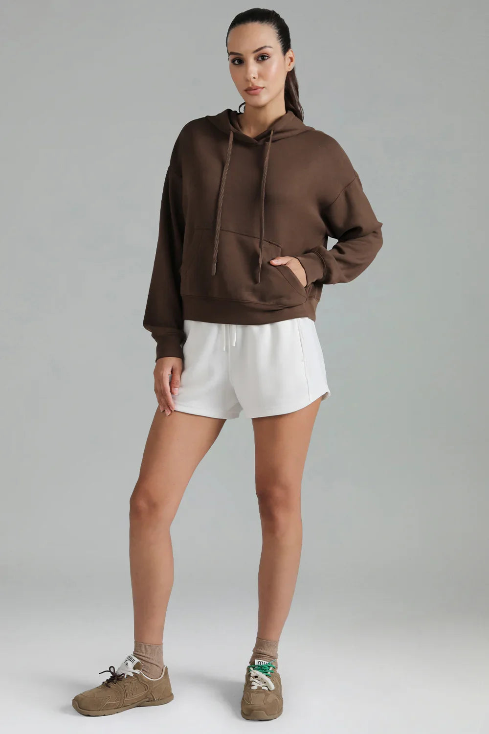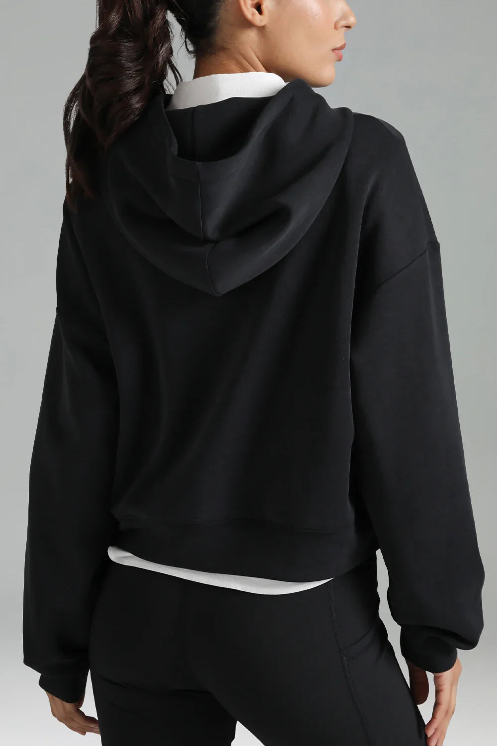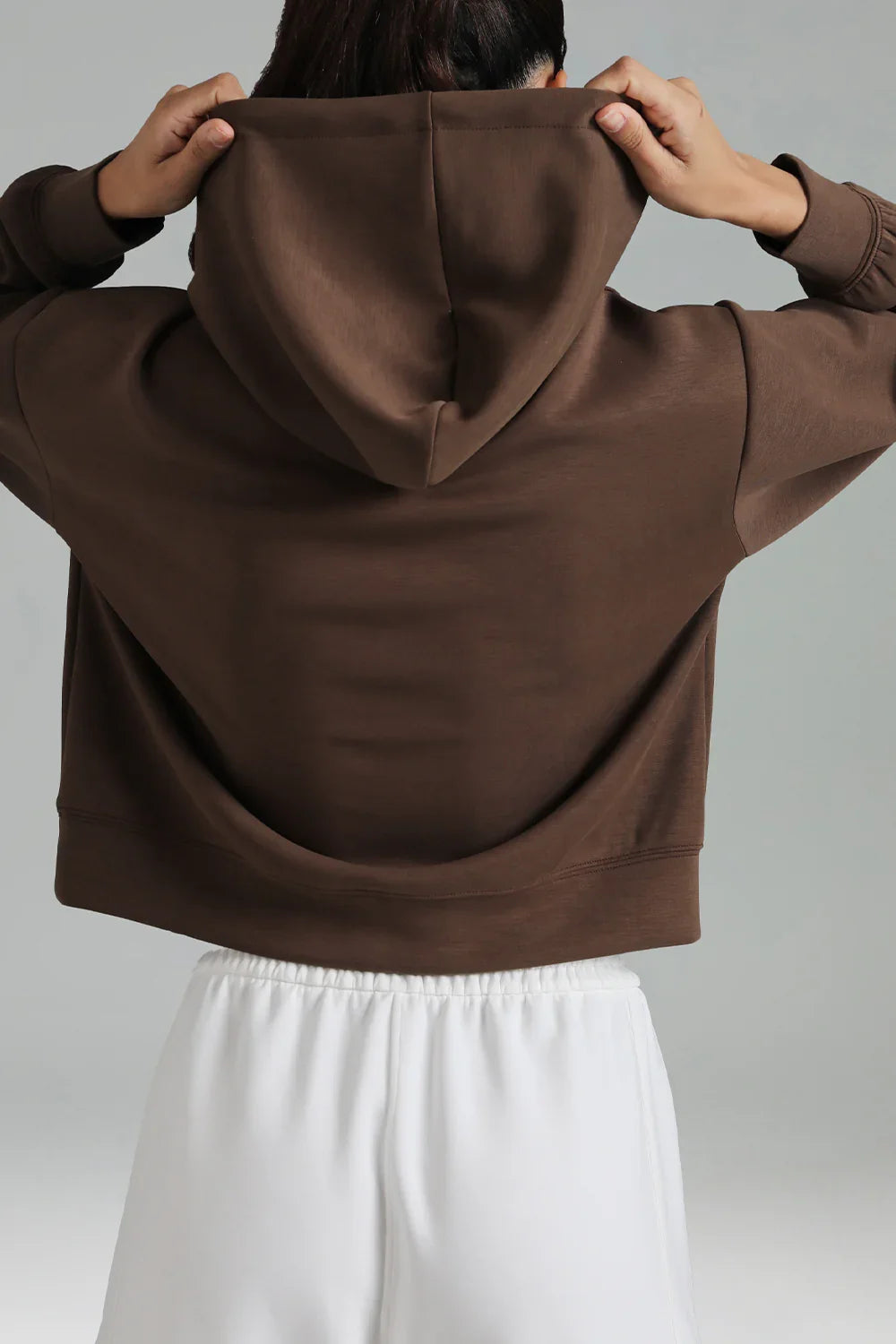- Crafted from soft and breathable modal fabric, this cropped hoodie offers ultimate comfort and a lightweight feel for everyday wear.